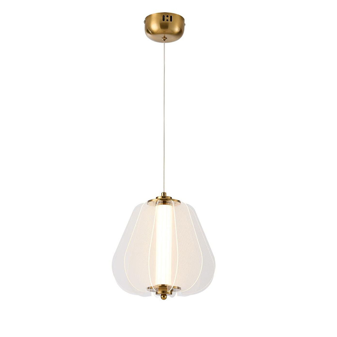 Bakır tonlarının sıcaklığı ile beyaz mikanın yumuşak ışık dağılımını buluşturan bu LED sarkıt avize, modern ve klasik dekorasyonlara uyum sağlayan zarif bir tasarıma sahiptir. Ayarlanabilir boy özelliği ile her tavan yüksekliğine kolayca adapte olur, yaşam alanınıza estetik ve fonksiyon katar. Ürün Özellikleri; En: 23 cm; Boy: 70 cm (ayarlanabilir); Başlık: Beyaz mika; Materyal: Metal ve mika; Renk: Bakır gövde & beyaz başlık; Aydınlatma Türü: LED; Güç: 18 Watt Garanti: 2 yıl