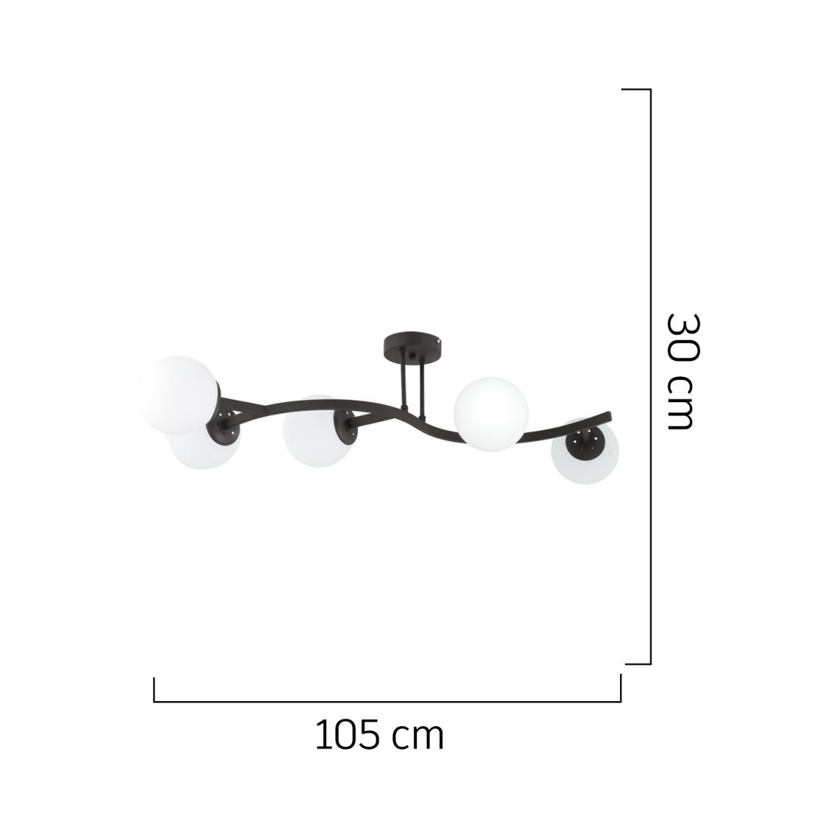 Eskitme rengi ve beyaz cam başlıkları ile modern ve klasik tarzı bir araya getiren bu 5'li metal avize, geniş salonlardan oturma odalarına kadar her alanda şıklığı ön plana çıkarıyor. 105 cm genişliği sayesinde odanıza dengeli bir aydınlatma sunarken, sağlam metal gövdesi uzun yıllar kullanım garantisi verir. Ürün Özellikleri; En: 105 cm; Boy: 30 cm; Renk: Siyah Materyal: Metal; Başlık: Cam; Duy Tipi: E-27; Ampuller: Dahil değildir; Boy Ölçüsü: Sabit; Garanti: 2 yıl