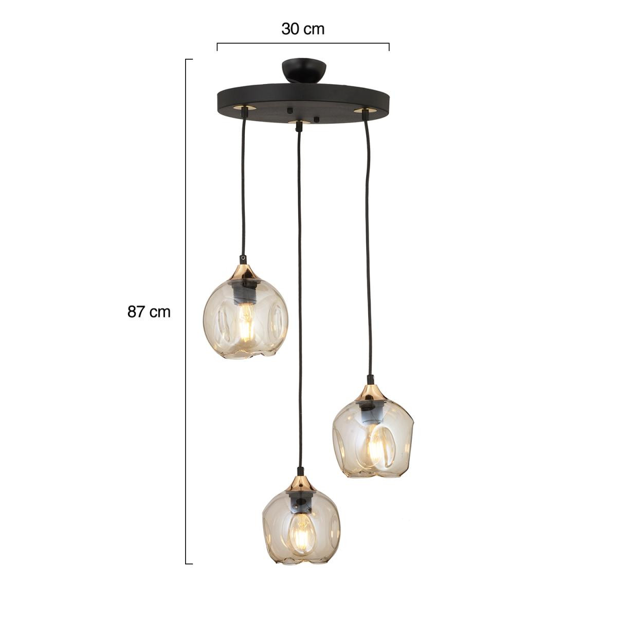 Apliqa Karya 3lü Yuvarlak Siyah Gold Modern Sarkıt Genç Odası Yatak Odası Retro Salon Avize