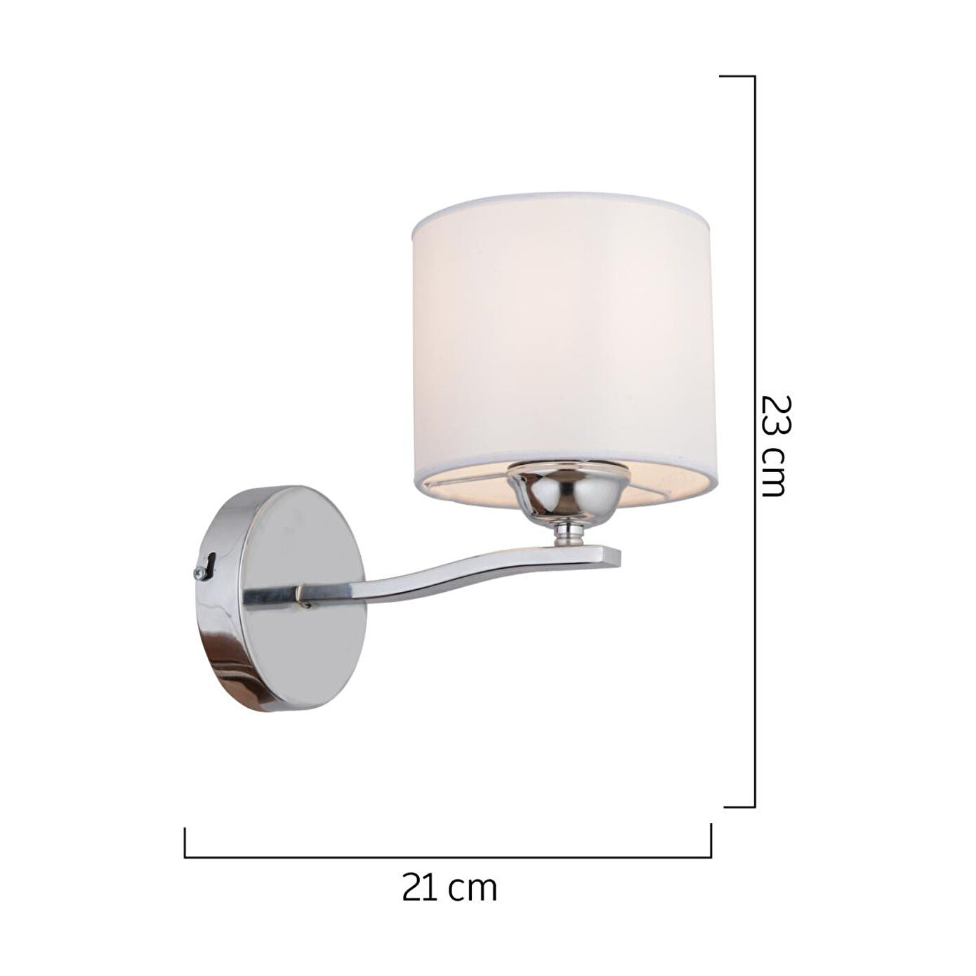 Zarif tasarımı ve modern eskitme detaylarıyla bu duvar aplik, yaşam alanlarınıza sıcak bir dokunuş katıyor. Krom renk gövde ve beyaz kumaş şapka birleşimi, hem klasik hem de modern dekorasyonlara uyum sağlayarak şık bir atmosfer oluşturur. Ürün Özellikleri; En: 28 cm; Boy: 39 cm; Materyal: Metal; Renk: Krom; Şapka: Beyaz kumaş; Duy Tipi: E-27; Ampul: Dahil değildir; Pilli: Değildir; Garanti: 2 yıl