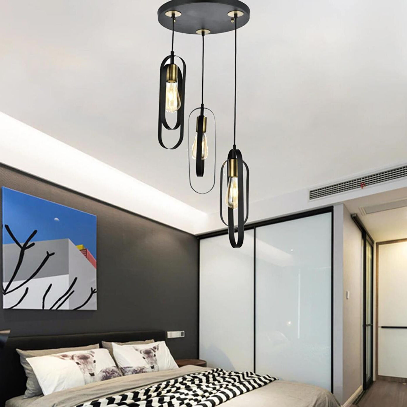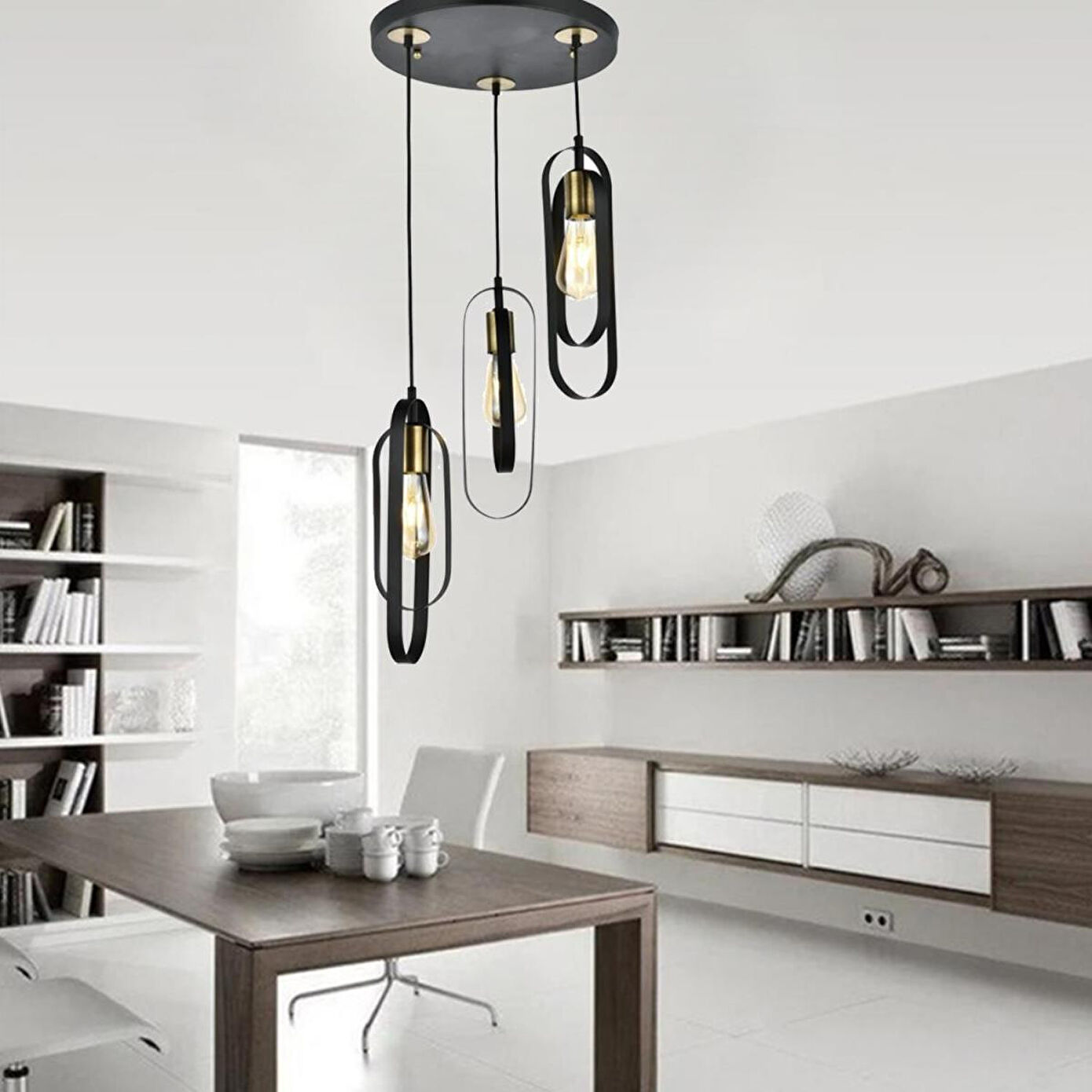 Apliqa Koza 3lü Yuvarlak Siyah Modern Genç Odası Mutfak Retro Salon Sarkıt Avize