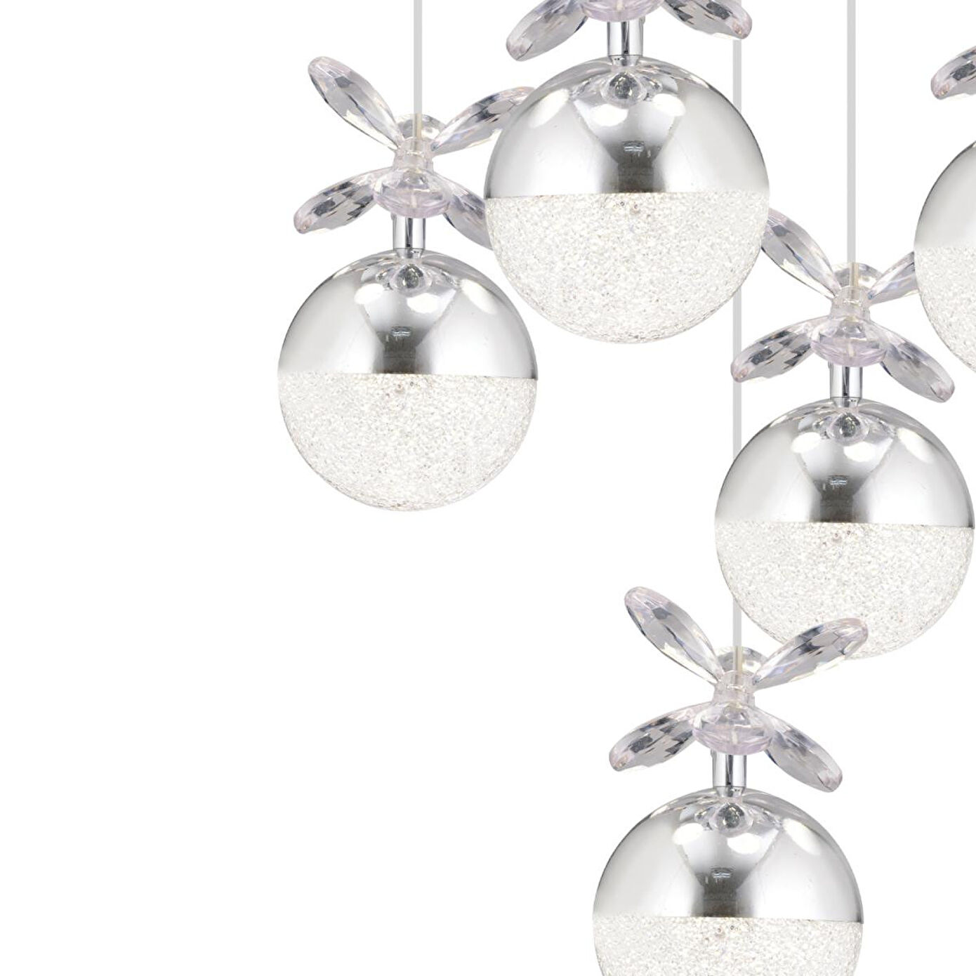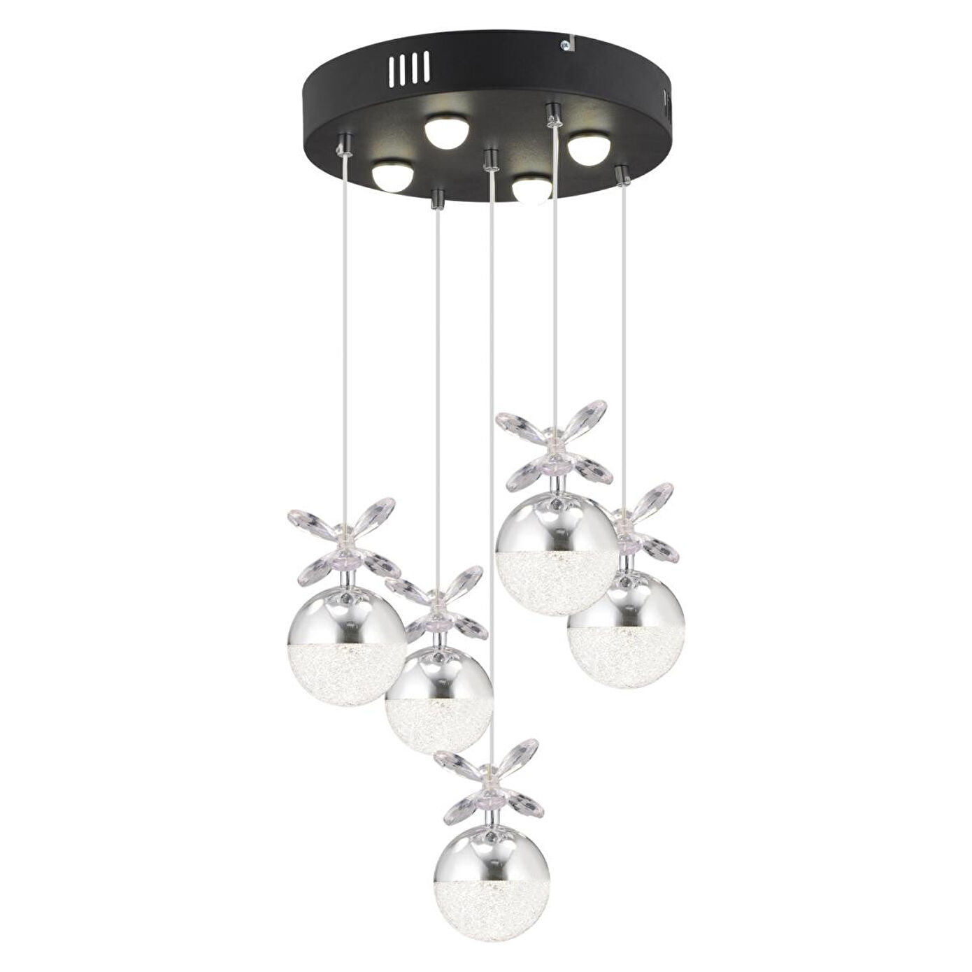Apliqa Lokken 5'li Yuvarlak 42 Watt Krom Kristal Ledli Modern Oturma Odası Salon Sarkıt Avize