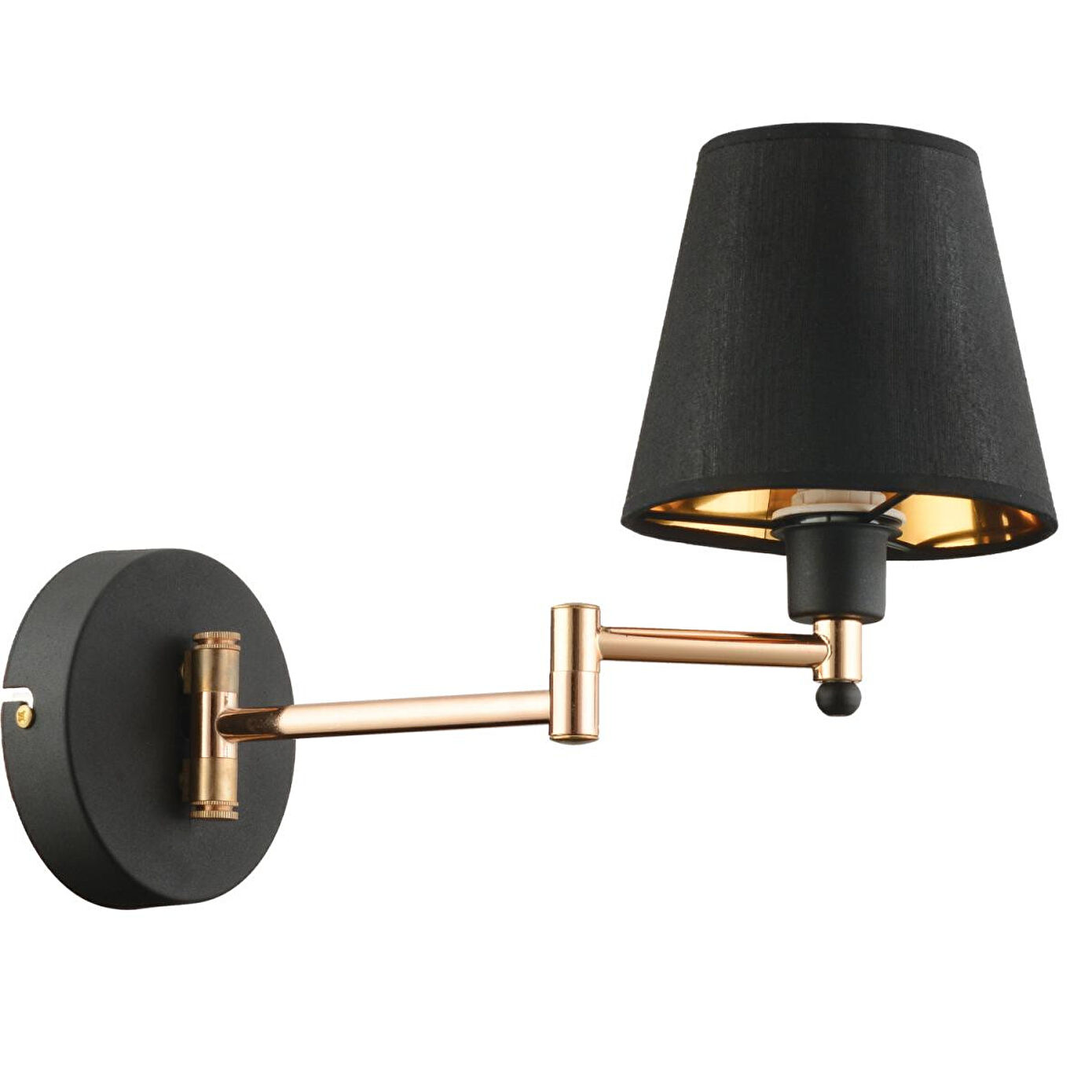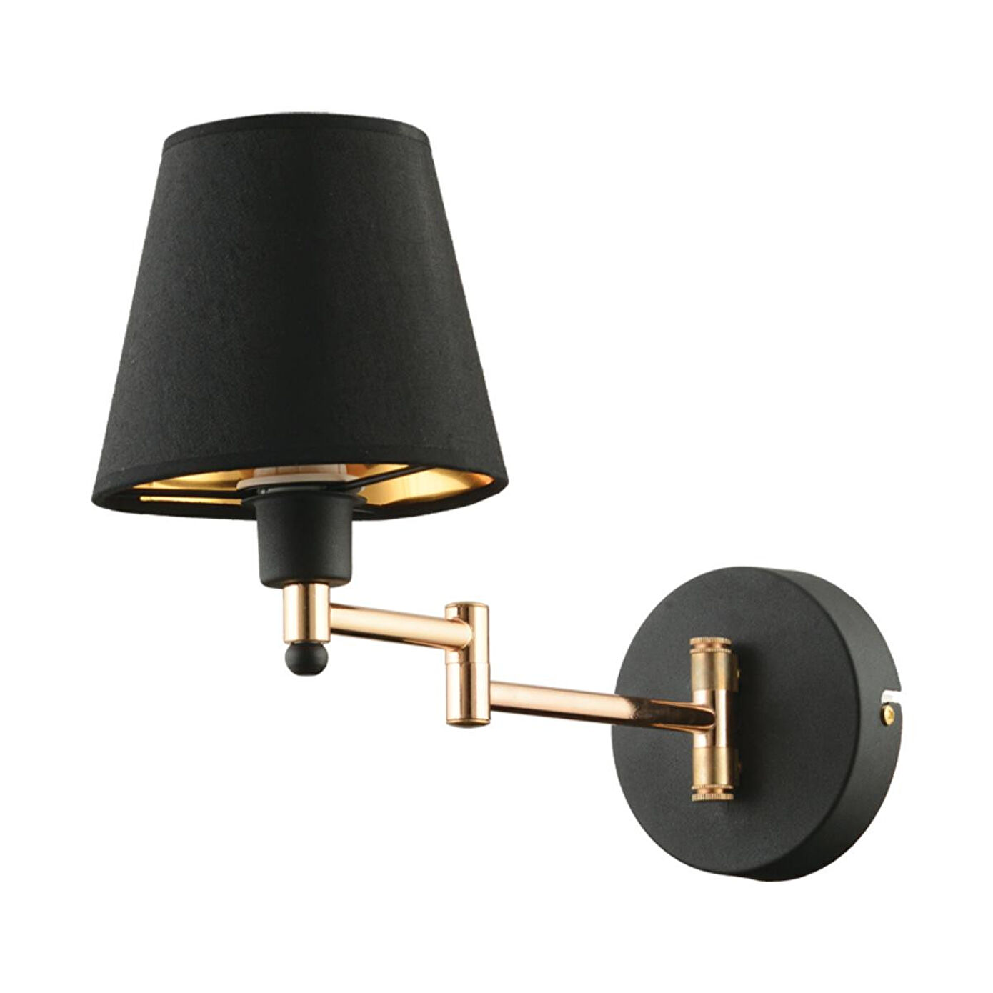 Evinize veya iş yerinize hem estetik hem de fonksiyonel bir dokunuş katacak bu duvar apliği, modern ve klasik çizgileri ustalıkla birleştirir. Siyah kumaş şapkası, ışığı yumuşatarak ortama sıcak ve davetkâr bir atmosfer kazandırırken,gold detaylı metal gövdesi dekorasyonunuza zarif bir şıklık ekler. Ürün Özellikleri; En: 28 cm; Boy: 40 cm; Materyal: Gövde metal, şapka kumaş; Renk: Siyah gövde gold detay, siyah kumaş başlık; Duy Tipi: E-27; Ampul: Dahil değildir (tercihinize göre LED, halojen veya tasarruflu ampul kullanabilirsiniz); Kullanım: Priz anahtarından kontrol sağlanır, pilli değildir; Garanti: 2 yıl