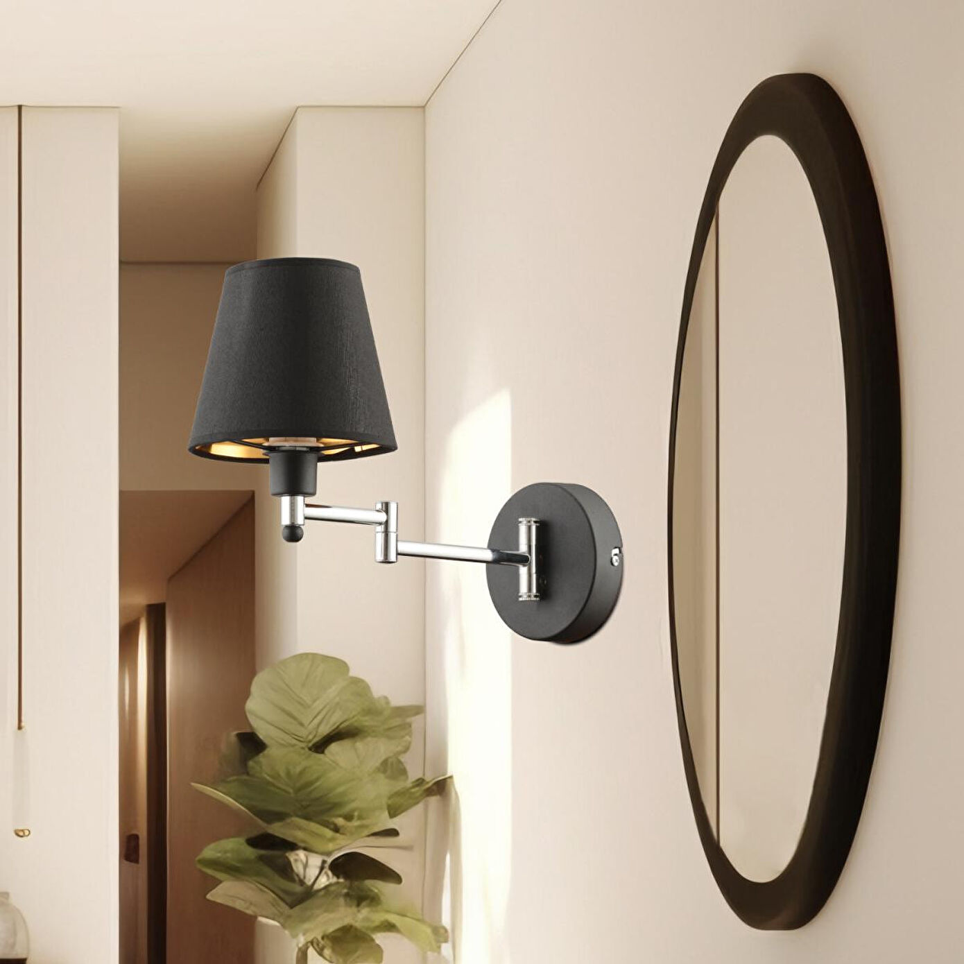 Evinize veya iş yerinize hem estetik hem de fonksiyonel bir dokunuş katacak bu duvar apliği, modern ve klasik çizgileri ustalıkla birleştirir. Siyah kumaş şapkası, ışığı yumuşatarak ortama sıcak ve davetkâr bir atmosfer kazandırırken,krom detaylı metal gövdesi dekorasyonunuza zarif bir şıklık ekler. Ürün Özellikleri; En: 28 cm; Boy: 40 cm; Materyal: Gövde metal, şapka kumaş; Renk: Siyah gövdekrom detay, siyah kumaş başlık; Duy Tipi: E-27; Ampul: Dahil değildir (tercihinize göre LED, halojen veya tasarruflu ampul kullanabilirsiniz); Kullanım: Priz anahtarından kontrol sağlanır, pilli değildir; Garanti: 2 yıl
