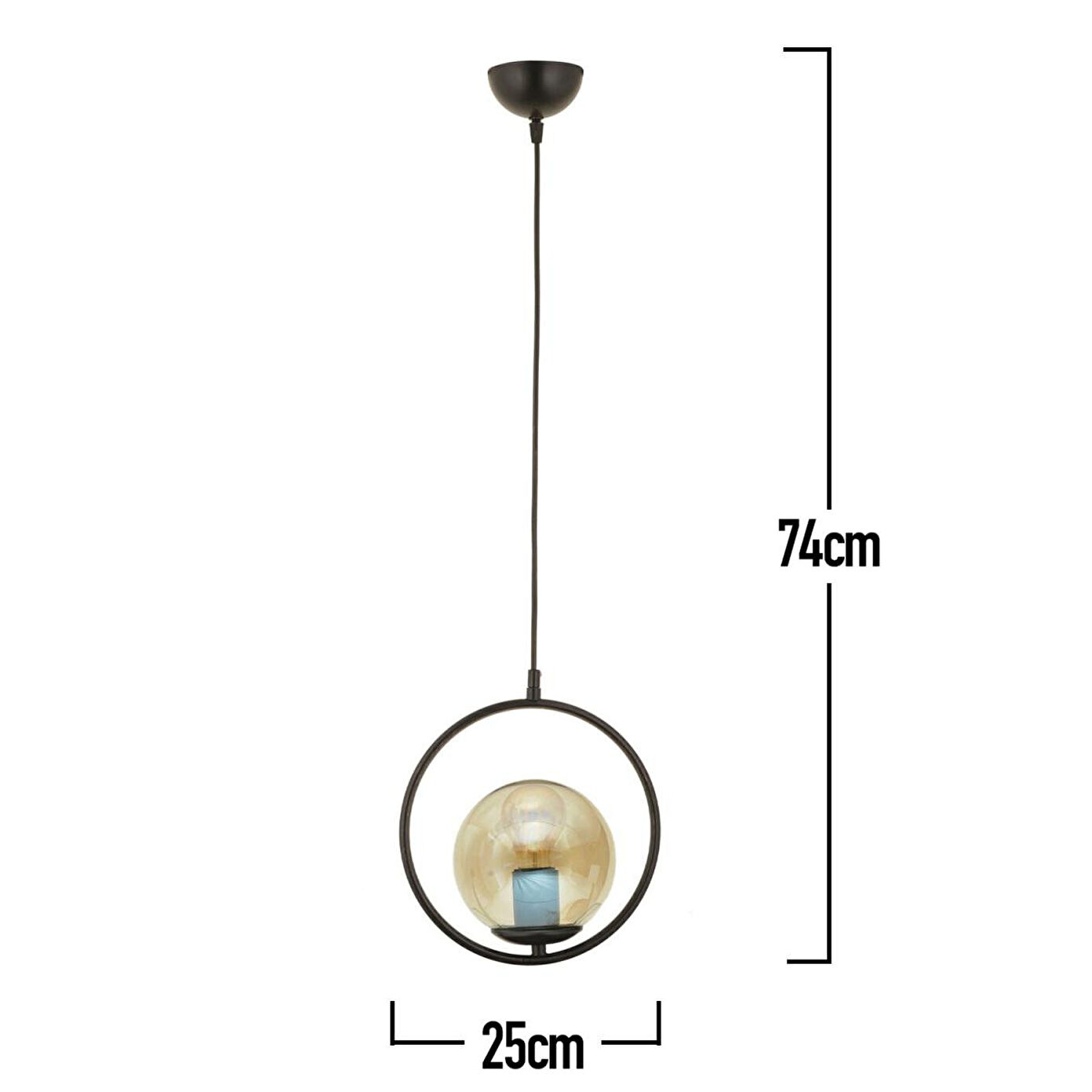 Evinizde veya ofisinizde modern ve şık bir atmosfer yaratmak için ideal olan bu avize, hem tekli kullanımlarda hem de grup halinde asıldığında dekorasyona güçlü bir katkı sağlar. Siyah rengi ve cam başlığıyla ışığı yumuşak bir şekilde yansıtarak sıcak ve samimi bir ortam oluşturur. Özellikler; Ürün Ölçüleri: En 25 cm, Boy 80 cm; Renk: Eskitme; Materyal: Metal gövde, cam başlık; Boy: Ayarlanabilir; Duy Tipi: E-27; Ampul: Dahil değildir; Garanti: 2 yıl