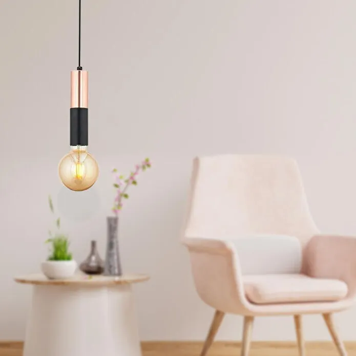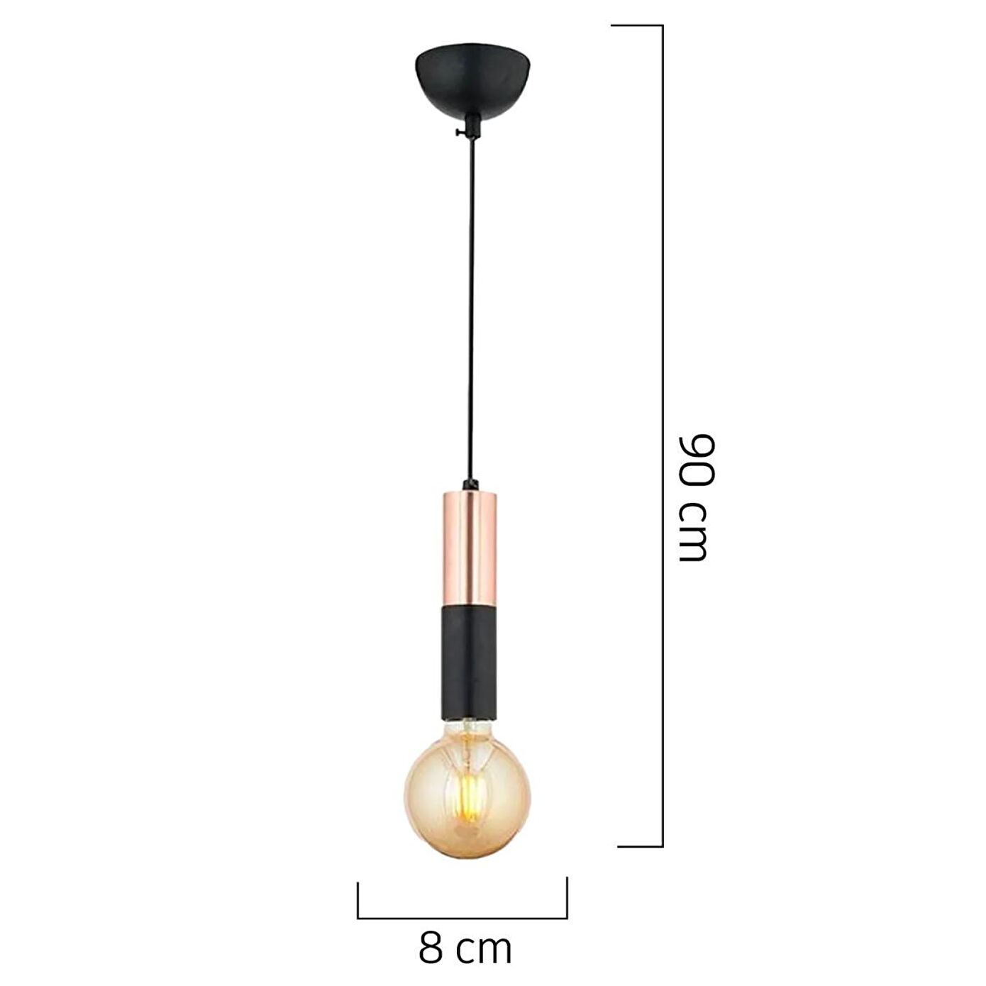 Modern tasarımı ve bakır rengin sıcak yansımasıyla öne çıkan bu avize, yaşam alanlarınıza zarif bir şıklık kazandırır. Minimalist formu sayesinde dar alanlarda bile rahatlıkla kullanılabilir, ayarlanabilir boy özelliği ile farklı tavan yüksekliklerine uyum sağlar. Ürün Özellikleri; En: 10 cm; Boy: 80 cm (ayarlanabilir); Renk: Bakır – siyah detaylı; Materyal: Metal; Duy Tipi: E-27; Ampul: Dahil değildir; Garanti: 2 yıl
