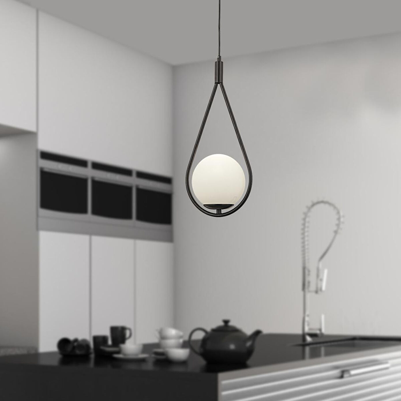 Apliqa Mirza Tekli Siyah Sarkıt Beyaz Camlı Modern Sarkıt Mutfak Salon Sarkıt Avize