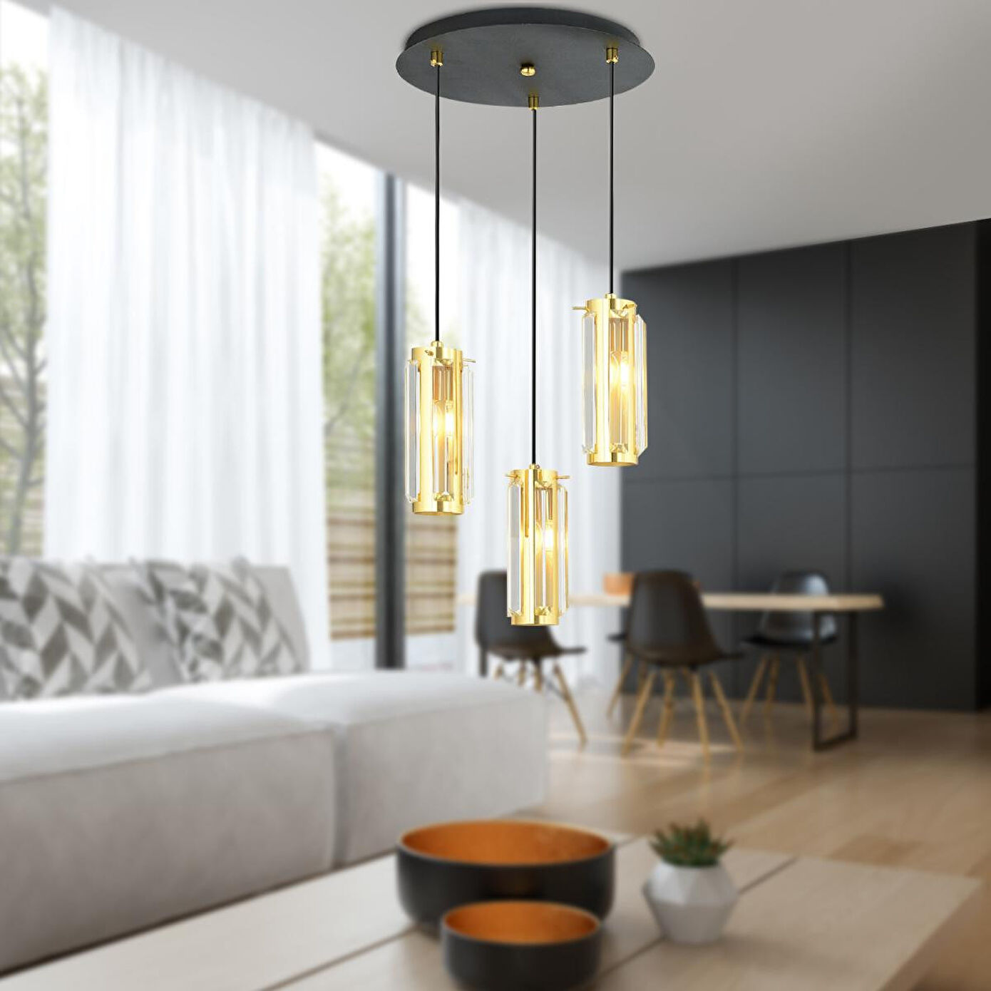 Apliqa Natali 3lü Sarkıt Eskitme Modern Genç Odası Mutfak Salon Sarkıt Avize