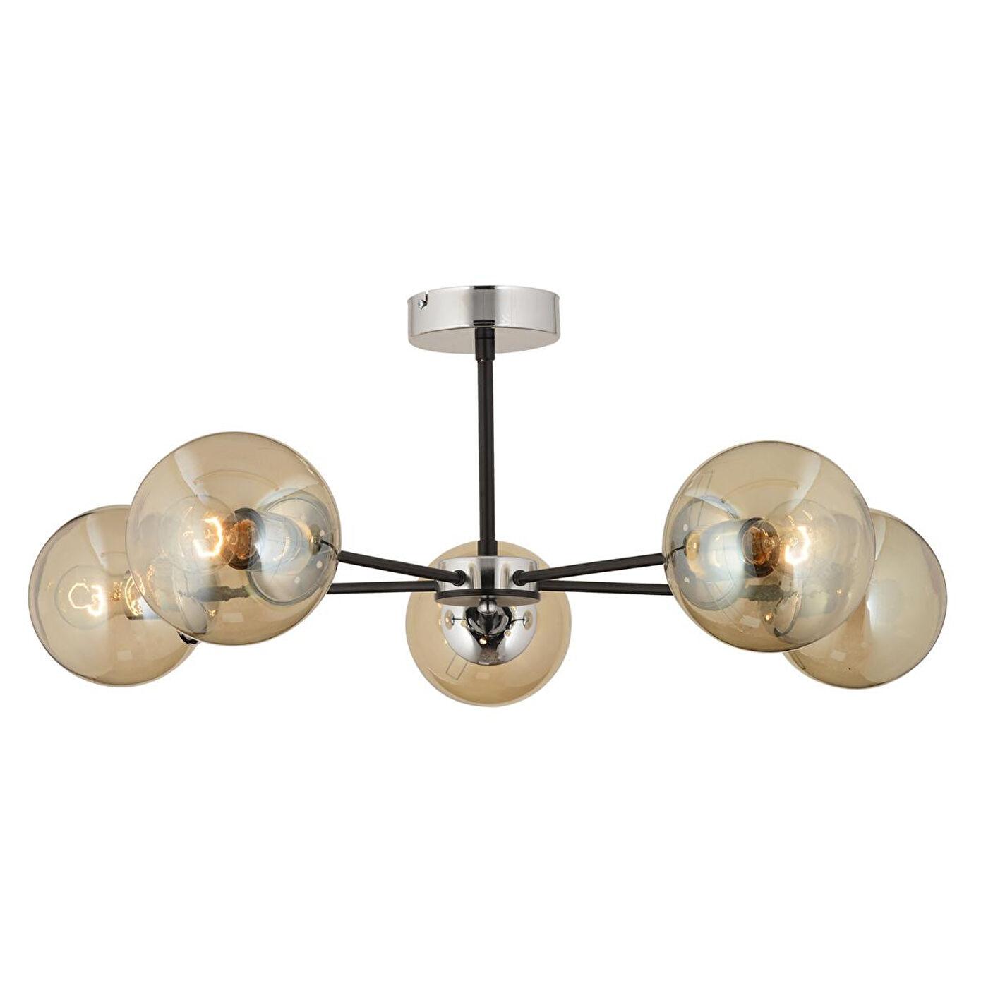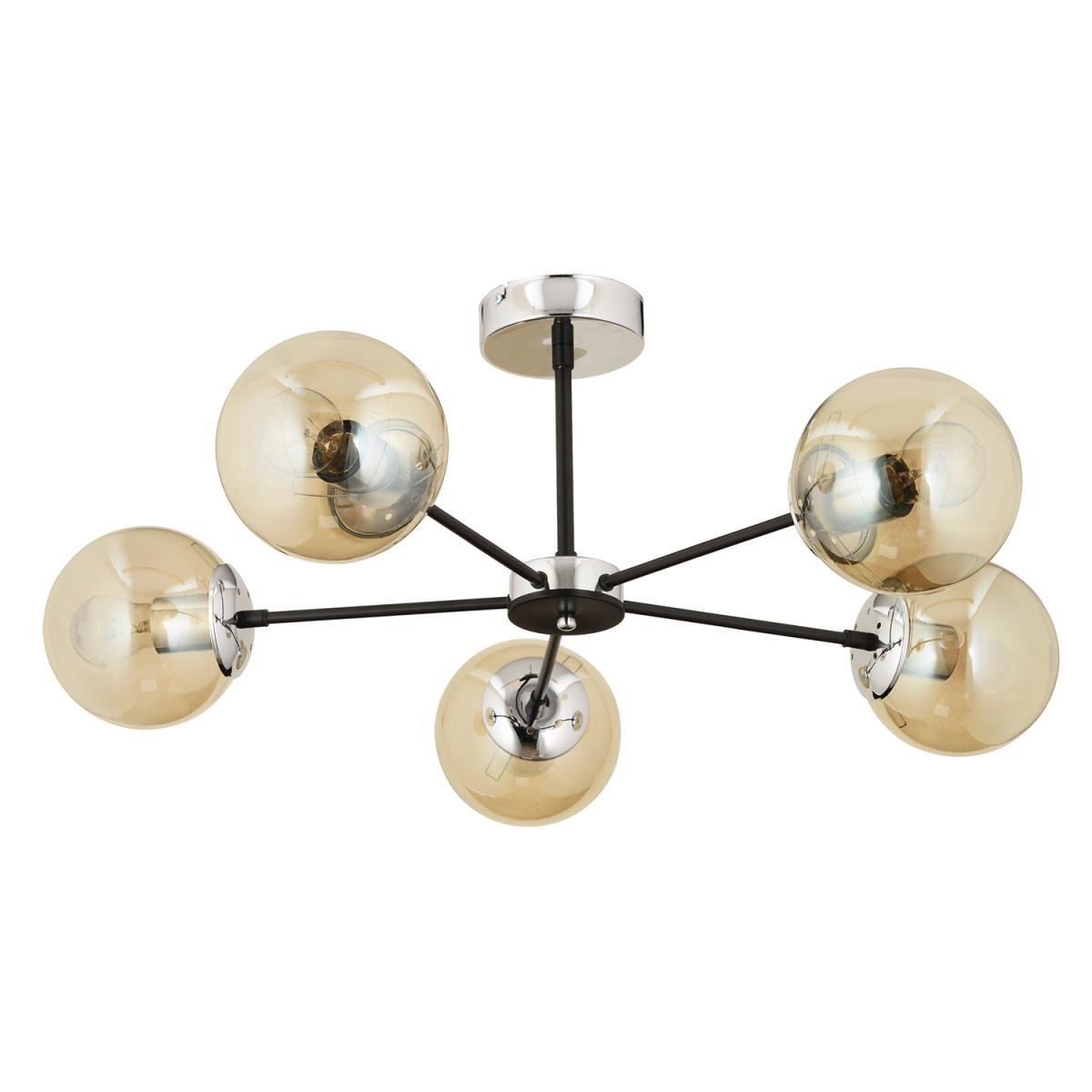 Apliqa Nide 5li Siyah Krom Bal Camlı Modern Genç Odası Yatak Odası Retro Salon Avize