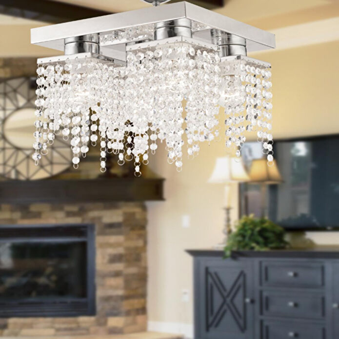 Modern tasarımıyla yaşam alanlarınıza zarafet katacak krom kristal taşlı avize, ışığı kristal taşlardan geçirerek mekânlara şık ve ışıltılı bir atmosfer kazandırır. Metal gövdesi uzun ömürlü kullanım sağlarken, cam kristal detayları sayesinde odanızda göz alıcı bir etki yaratır. Ürün Özellikleri; Ürün Ölçüleri: En 30 cm, Boy 30 cm; Renk: Krom; Materyal: Metal gövde; Başlık: Kristal taşlar (cam); Duy Tipi: E-14; Ampuller: Dahil değildir; Boy Ölçüsü: Sabit; Kurulum: Demonte gönderilmektedir; Garanti: 2 yıl garantili