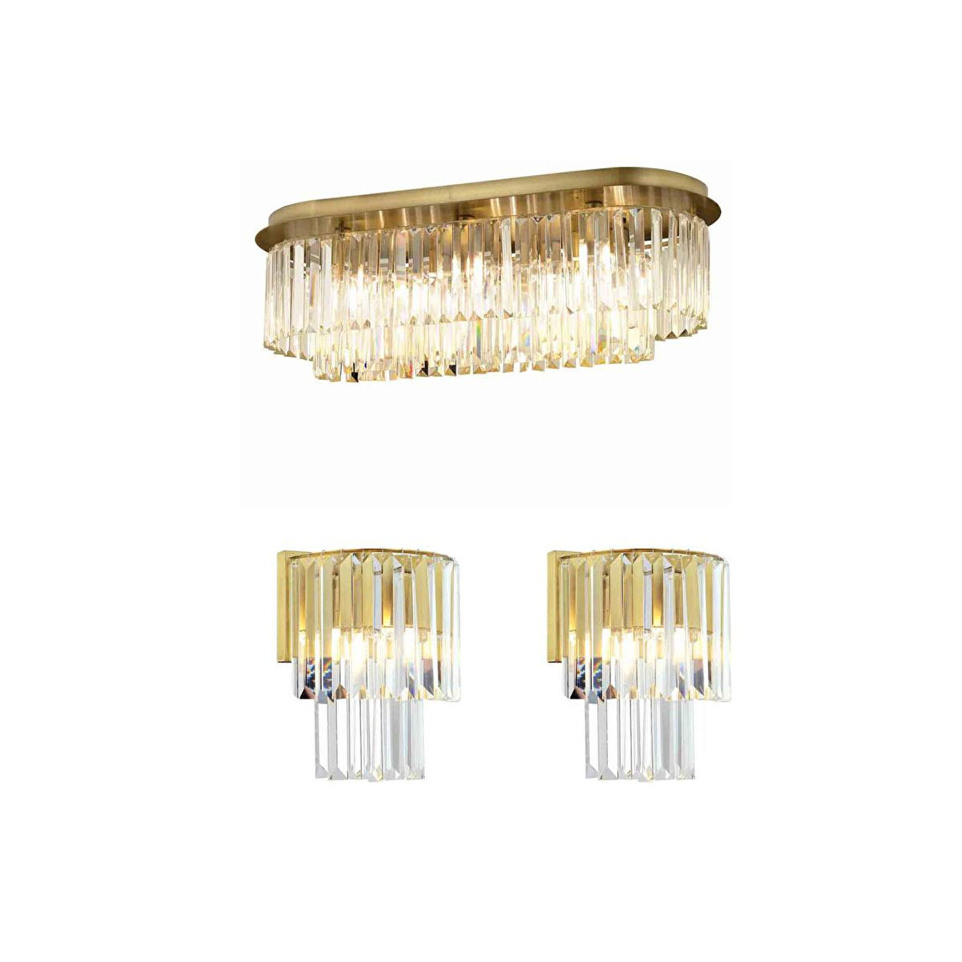 Apliqa Nilüfer Dikdörtgen Eskitme 3 Parça Kristalli Taşlı Modern Tasarım Kristal Salon Avize-aplik Seti