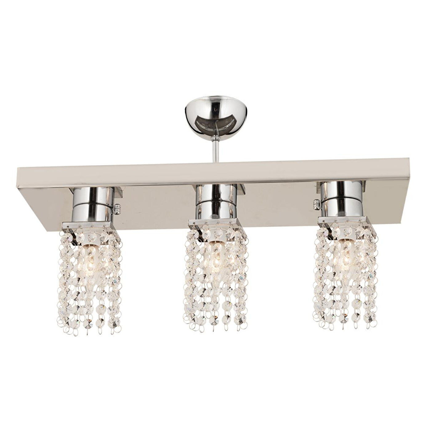 Apliqa Peter 3lü Sıralı Krom Kristalli, Taşlı Modern Tasarım Kristal Salon Avize