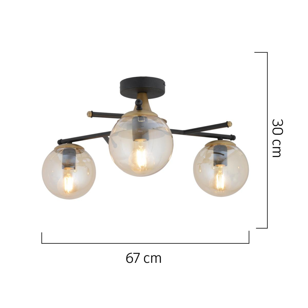 Şık ve modern tasarımıyla yaşam alanlarınıza zarafet katan bu tavan aydınlatma, bal cam detayları ve eskitme siyah gövdesi ile dekorasyonunuza sofistike bir dokunuş yapar. Metal gövdesi sayesinde uzun ömürlü kullanım sunarken, E-27 duy tipine sahip oluşu sayesinde dilediğiniz ampulü kolayca kullanabilirsiniz. Ürün Özellikleri; En: 60 cm; Boy: 30 cm; Renk: Eskitme siyah; Materyal: Metal; Cam: Bal cam; Duy Tipi: E-27; Ampuller: Dahil değildir; Boy Ölçüsü: Sabittir; Garanti: 2 yıl