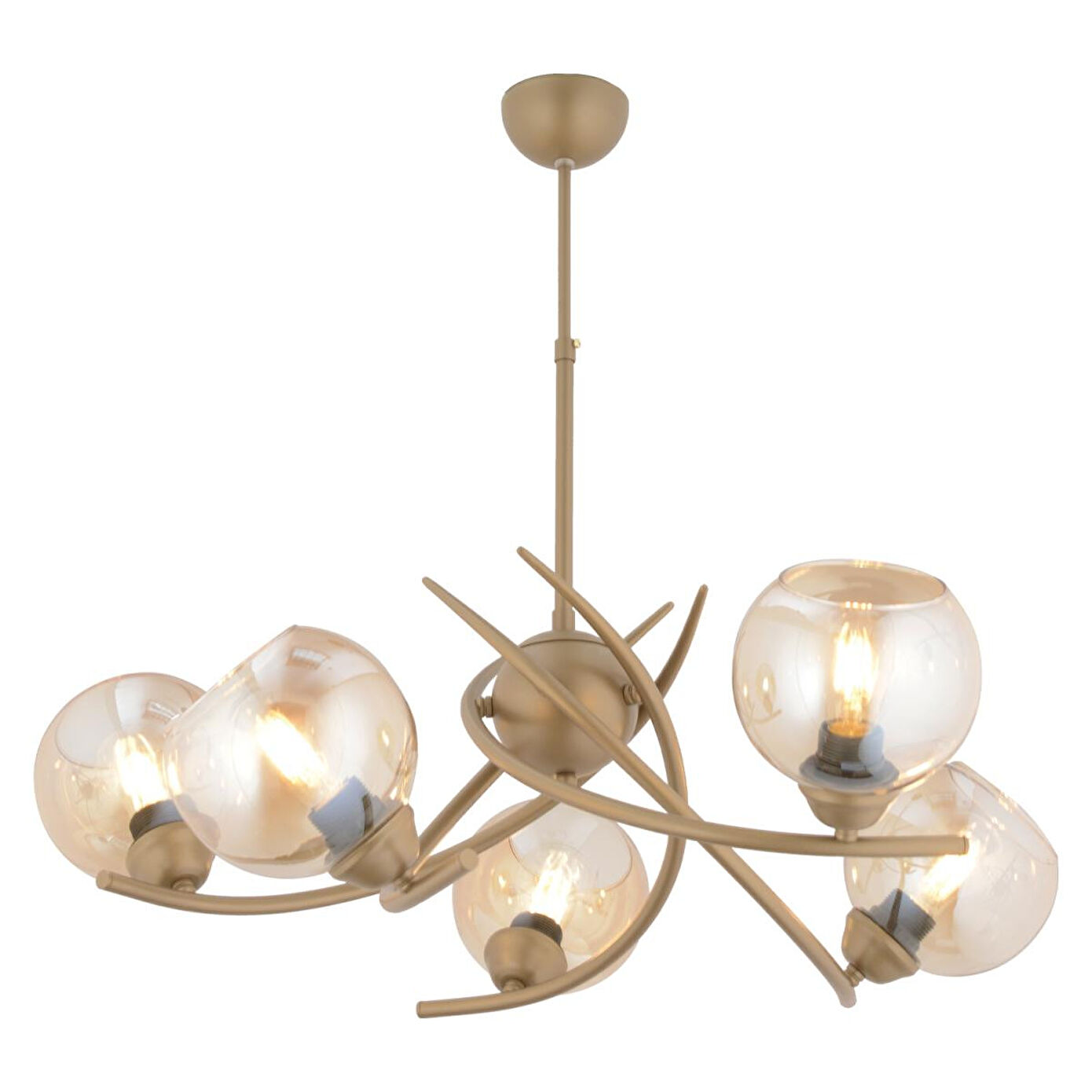 Apliqa Pireal 5'li Yuvarlak Eskitme Bal Camlı Modern Oturma Odası Salon Avize