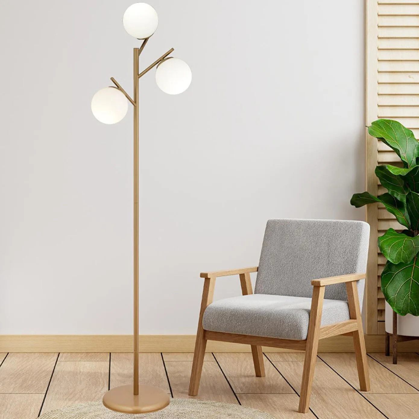 dern tasarımıyla salon, oturma odası veya çalışma alanlarınıza sofistike bir hava katan bu 3 başlıklı lambader, aynı anda hem dekoratif hem de kullanışlı bir çözüm sunar. Şık siyah gövdesiyle her tarz mobilyaya uyum sağlar, cam başlıklarıyla ise ışığı dengeli şekilde yayarak mekanınıza ferahlık katar. Özellikler; Ürün Ölçüleri: En 30 cm / Boy 175 cm; Renk: eskitme Materyal: Metal gövde, cam başlıklar; Duy Tipi: E-27; Ampul: Dahil değildir; Fiş Uzunluğu: 150 cm; Garanti: 2 yıl