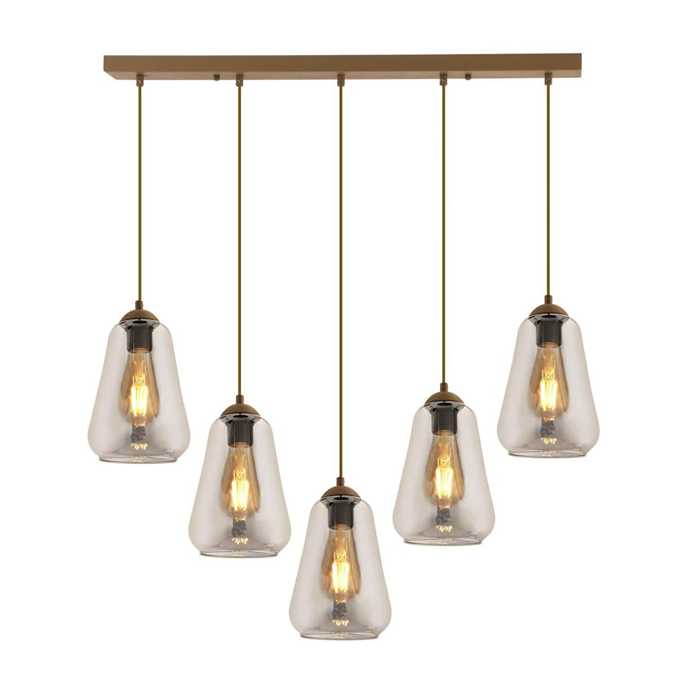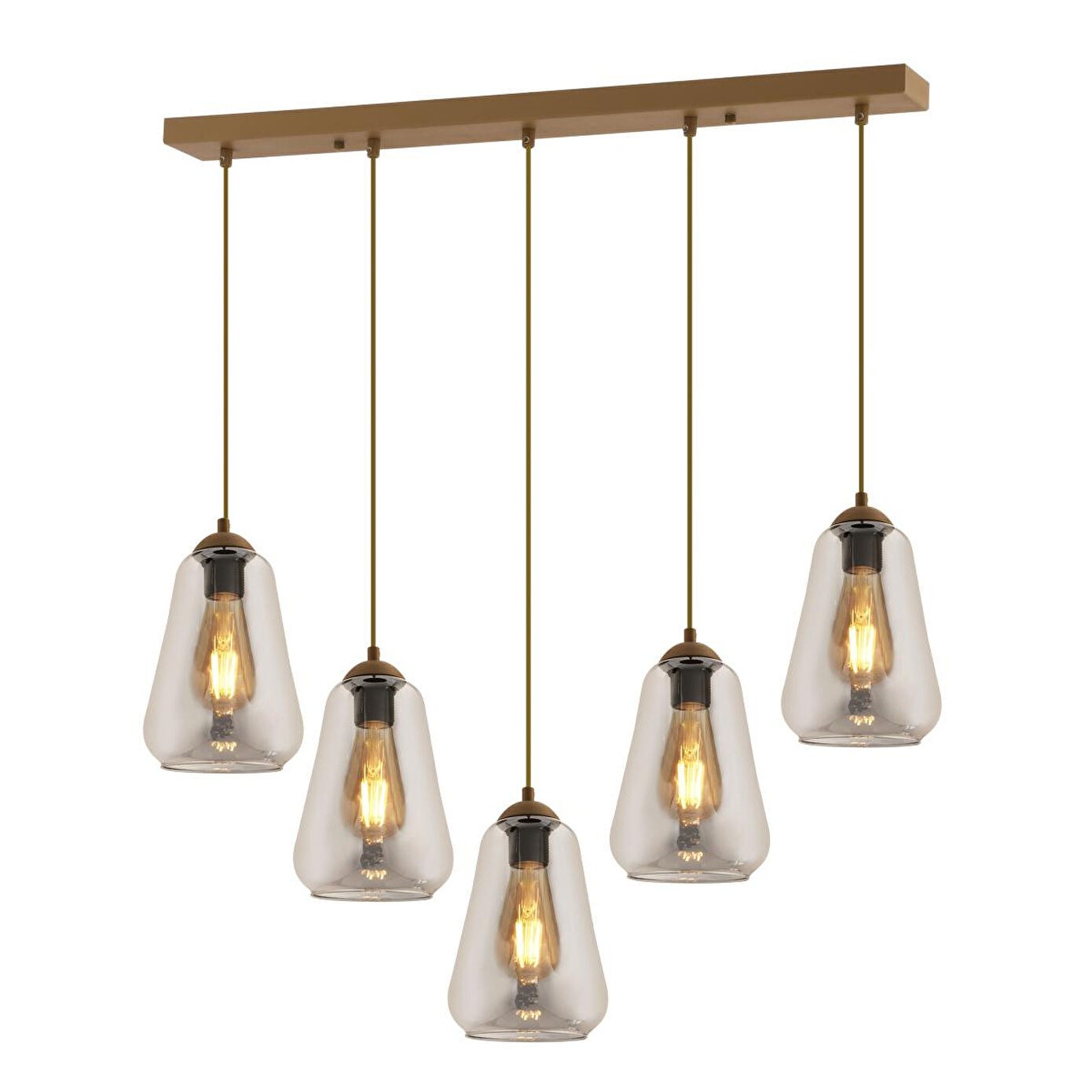 Apliqa Rita 5'li Sıralı Eskitme Füme Camlı Modern Salon Sarkıt Avize