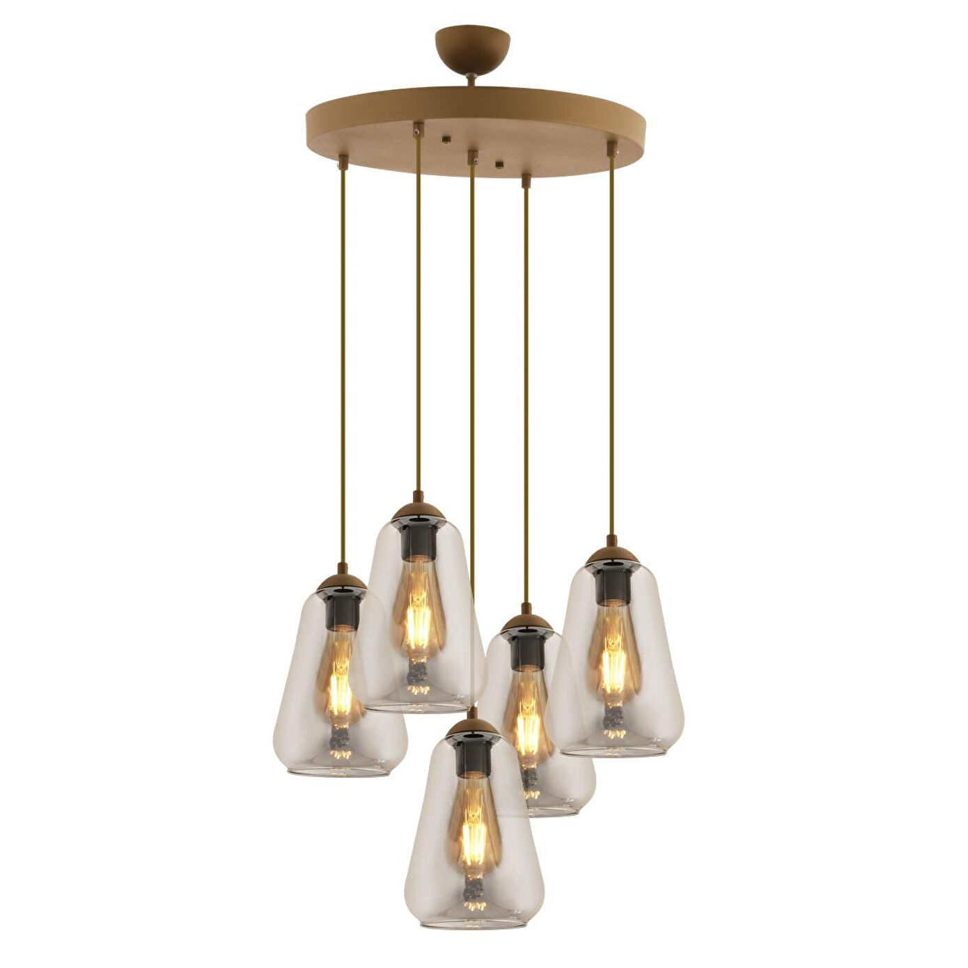 Apliqa Rita 5'li Yuvarlak Eskitme Füme Camlı Modern Salon Sarkıt Avize