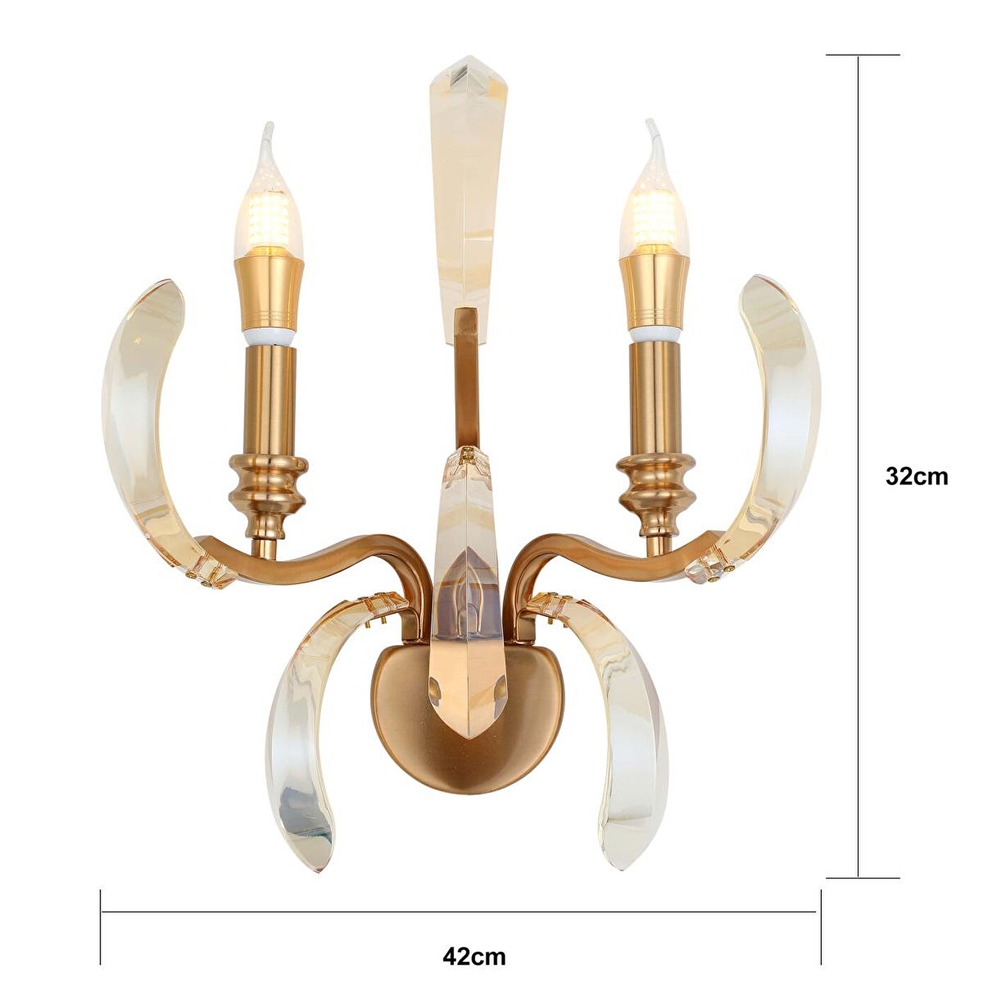 Apliqa Ronja 2'li Bakır Eskitme Kristal Taşlı Yatak Başı, Salon Aplik