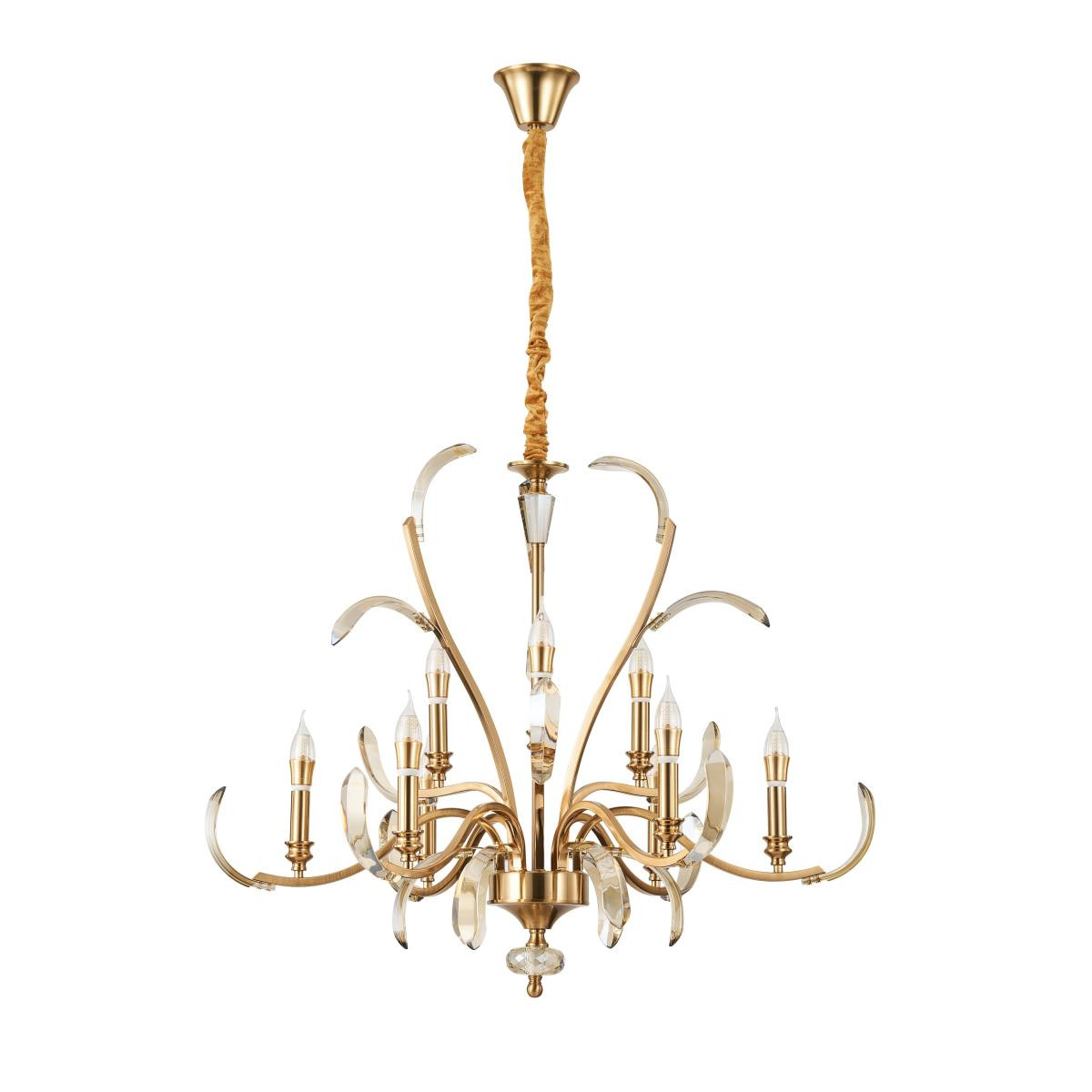 Evinize ya da iş yerinize lüks ve zarafeti bir arada taşıyacak bu bakır renkli kristal avize, modern ve klasik tarzın eşsiz bir buluşmasıdır. Işığın kristallerden süzülerek yayılması, ortama sıcak ve ışıltılı bir ambiyans katar. Zarif kavisli kolları ve cam kristal detayları ile yaşam alanlarınıza göz alıcı bir şıklık kazandırır. Ürün Özellikleri; Ürün Genişliği: 68 cm; Ürün Yüksekliği: 55 cm (Boy ayarlanabilir); Renk: Bakır; Materyal: Metal gövde, cam kristaller; Kristal Malzemesi: Cam; Duy Tipi: E-14; Ampul Sayısı: 9 adet (Ampuller dahil değildir); Kurulum: Demonte olarak gönderilir, kolay montaj Garanti Süresi: 2 yıl