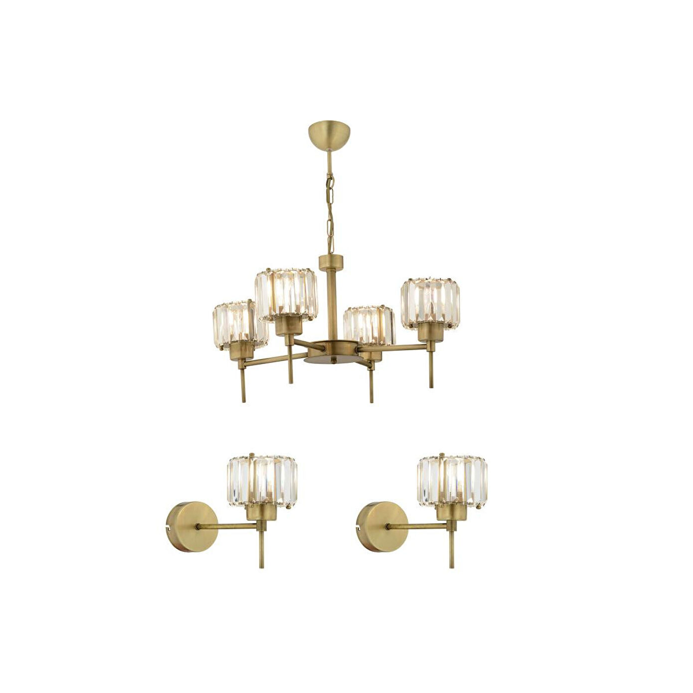 Apliqa Sadem 4 Lü Eskitme 3 Parça Kristalli Taşlı Modern Tasarım Kristal Salon Avize-aplik Seti