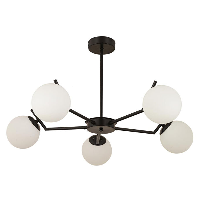Apliqa Sara 5li Siyah Beyaz Camlı Modern Genç Odası Yemek Masası Üstü Retro Salon Avize