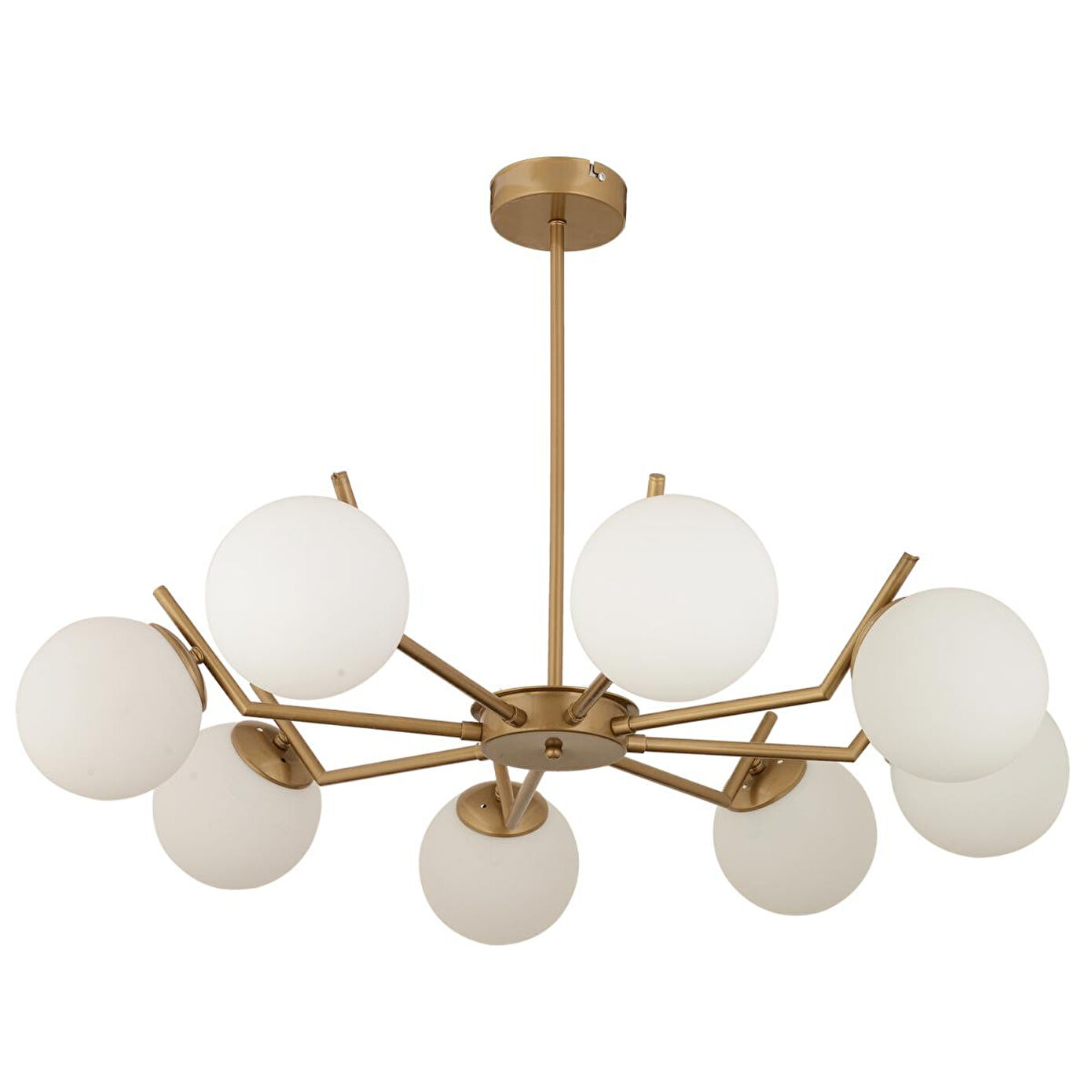 Evinizde ya da iş yerinizde hem modern hem de sıcak bir atmosfer yaratmak istiyorsanız, bu eskitme renkli avize tam size göre! Dayanıklı metal gövdesi, zarif cam başlıkları ve geniş aydınlatma alanı ile salon, oturma odası ve yemek alanları için mükemmel bir seçimdir. Özellikler; En: 87 cm; Boy: 52 cm; Renk: Eskitme; Materyal: Metal; Başlık: Cam; Duy Tipi: E-27; Ampuller dahil değildir; Boy ölçüsü sabittir; Demonte gönderilir; 2 yıl garantilidir
