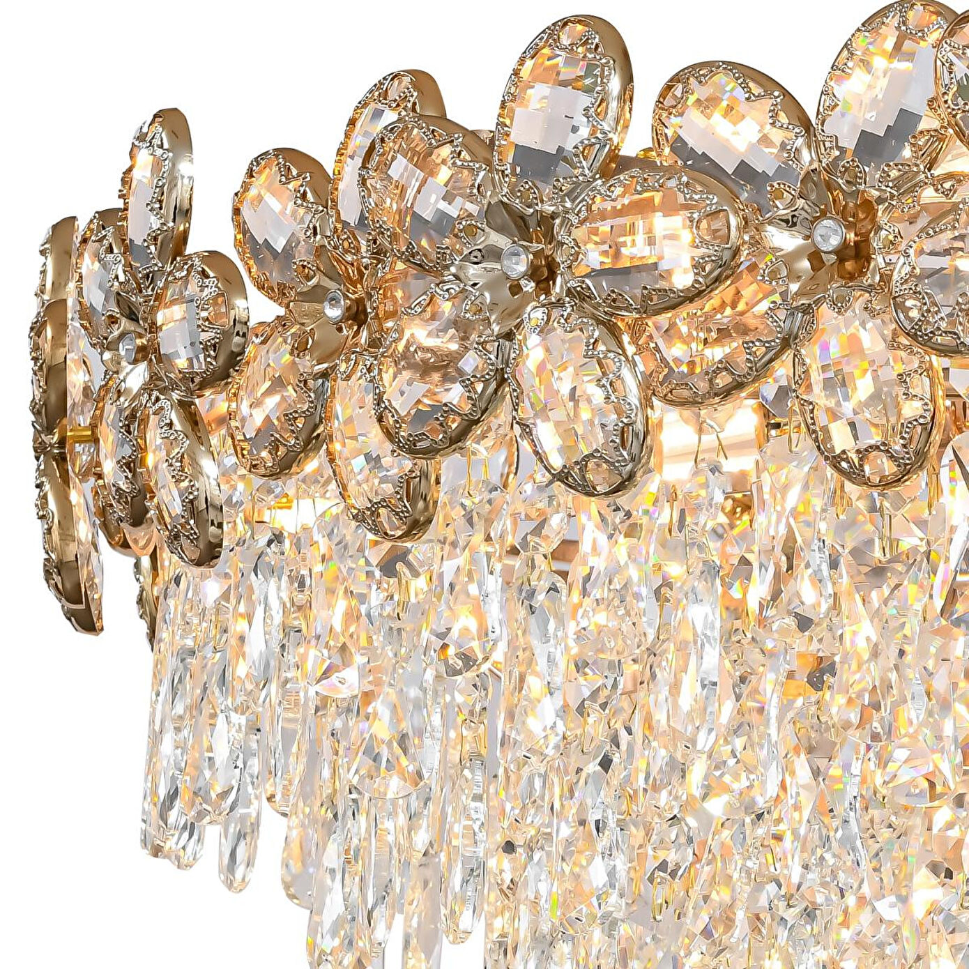 Apliqa Saral 60'lık Yuvarlak Gold Kristal Taşlı Modern Tasarım Salon Avize