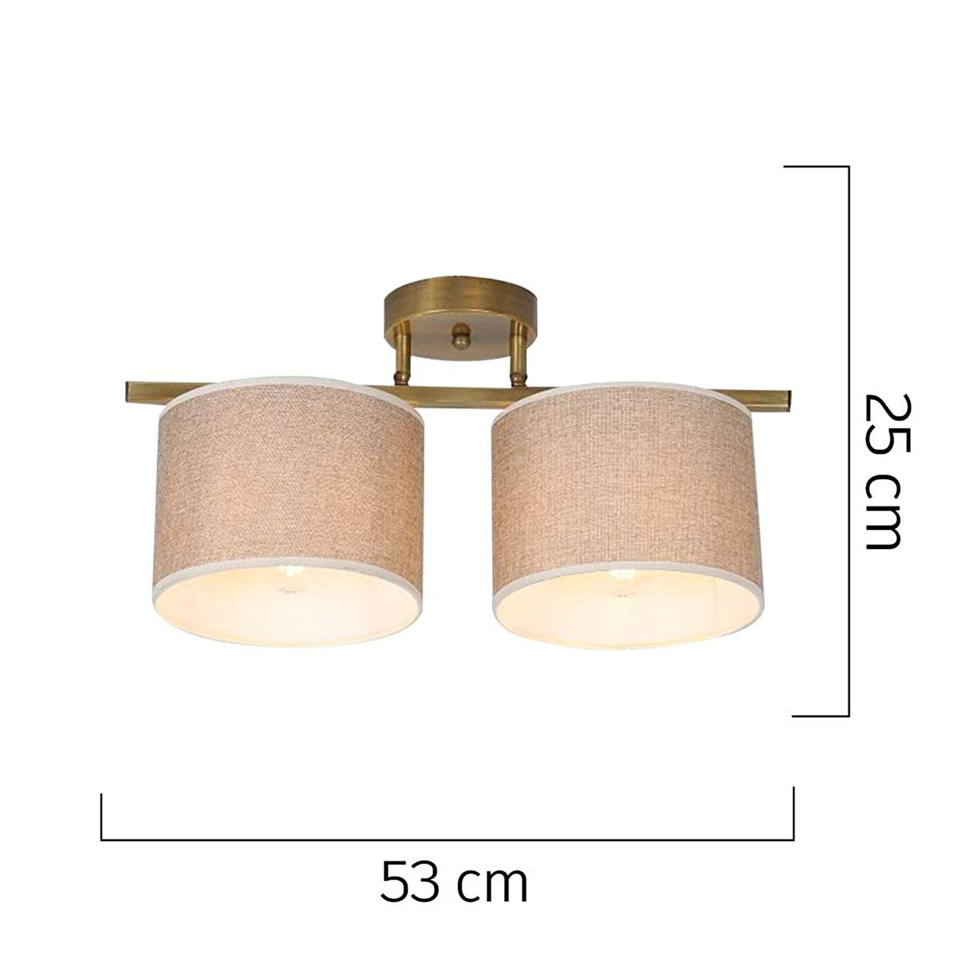 Sade ve şık tasarımıyla öne çıkan bu tavan armatürü, hem modern hem de klasik dekorasyonlara uyum sağlar. Eskitme rengi sayesinde mekanınıza nostaljik bir sıcaklık katarak, aydınlatmanın yanı sıra dekoratif bir obje işlevi de görür. Dayanıklı metal yapısı uzun ömürlü kullanım sunarken, kolay montaj özelliği ile pratik bir tercihtir. Özellikler; Ürün En: 50 cm; Boy: 20 cm; Renk: Eskitme; Materyal: Metal; Duy Tipi: E-27; Ampul: Dahil değildir; Boy: Sabit; Garanti: 2 Yıl