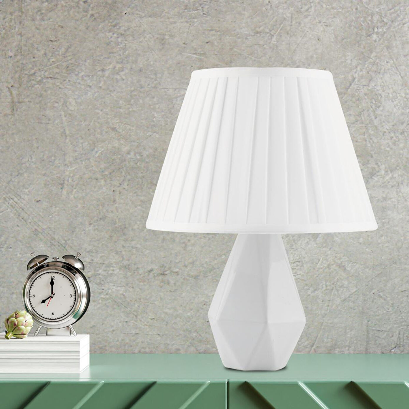 Apliqa Tardu Beyaz Şapkalı Beyaz Seramik Salon-yatak Odası Tasarım Abajur