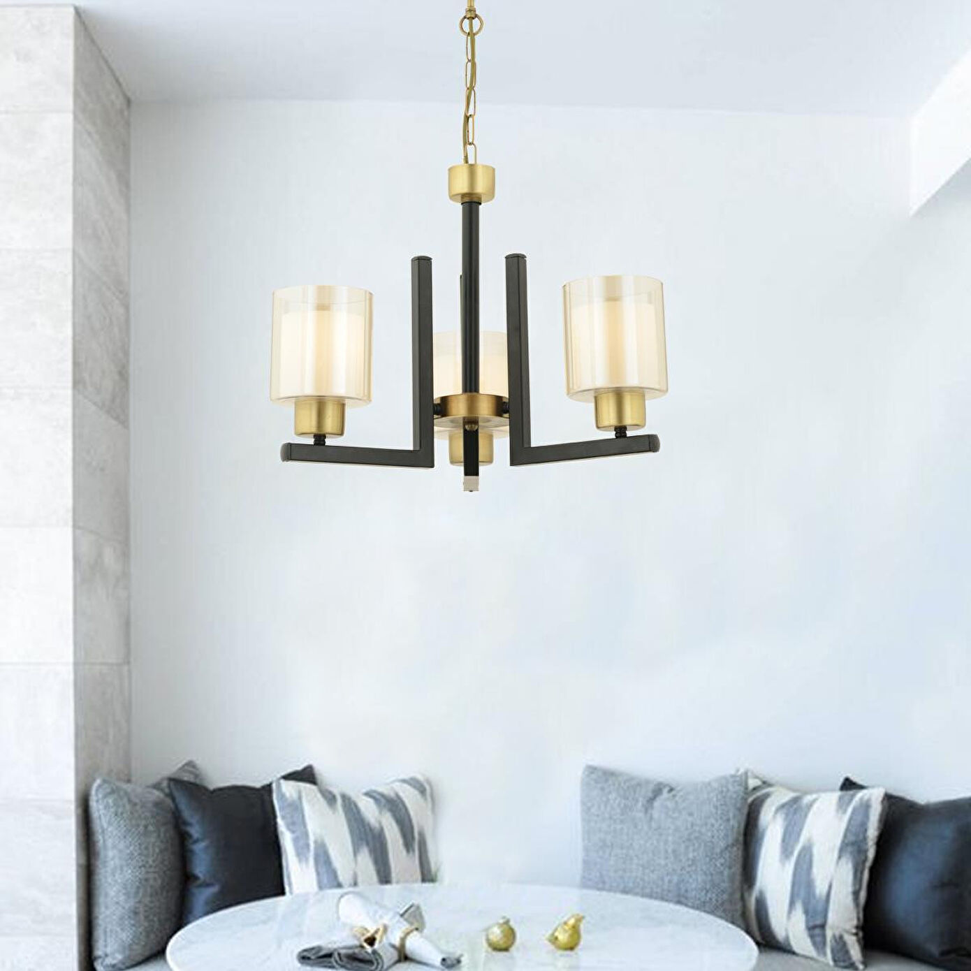 Apliqa Tisse 3 Lü Eskitme Siyah Modern Yatak Odası Mutfak Oturma Odası Salon Avize