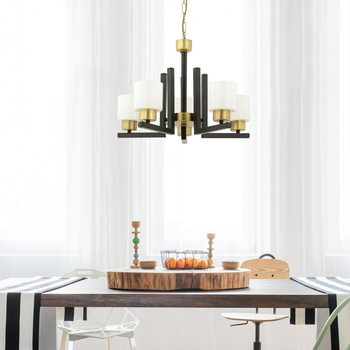 Modern ve klasik tasarımı bir arada sunan bu avize, siyah ve eskitme detayların şıklığını cam başlıkların zarif ışığıyla buluşturuyor. Göz alıcı tasarımıyla evinize estetik bir hava katan bu model, yaşam alanlarınıza hem şıklık hem de sıcak bir ambiyans kazandırır. Ürün Özellikleri; En: 55 cm; Boy: 60 cm (ayarlanabilir yükseklik); Renk: Siyah – Eskitme; Materyal: Metal; Başlıklar: Cam; Duy Tipi: E-27; Ampuller: Dahil değildir; Boy: Ayarlanabilir; Demonte: Evet, kolay montaj için demonte gönderilir; Garanti: 2 yıl