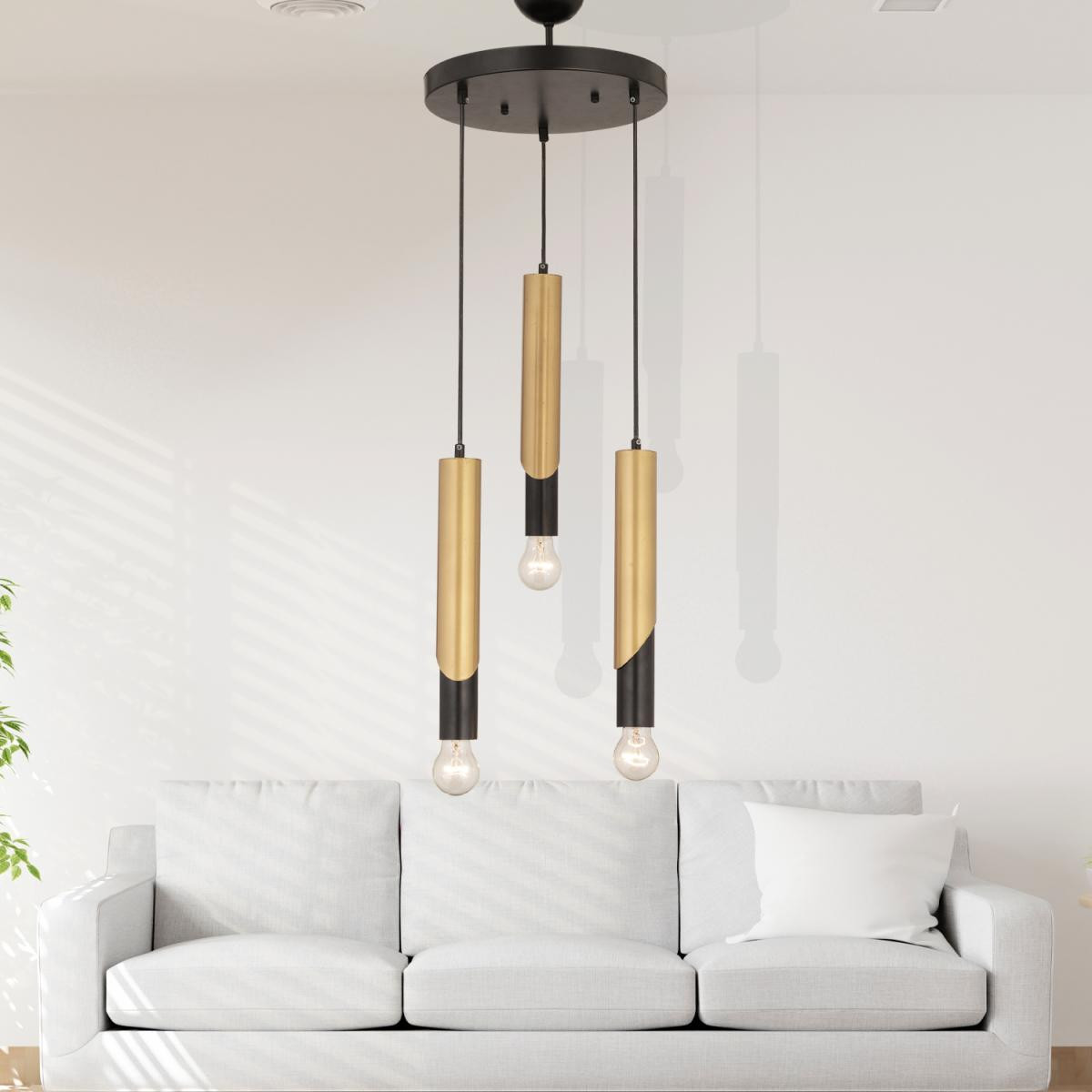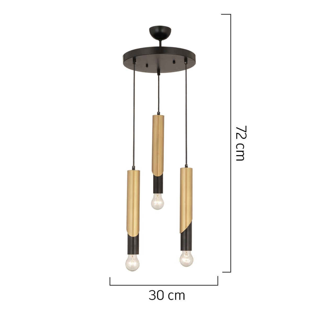 Modern ve şık tasarımıyla dikkat çeken siyah-eskitme detaylı 3’lü sarkıt avize, yaşam alanlarınıza zarif bir dokunuş katıyor. Farklı uzunluklarda sarkan metal gövdeleri ve sade tasarımıyla hem modern hem de endüstriyel dekorasyonlara mükemmel uyum sağlar. Salon, yemek odası, mutfak adası ya da ofis ortamlarında sofistike bir atmosfer yaratır. Ürün Özellikleri; Ürün Ebatları: En 30cm, Boy 72 cm; Renk: Siyah – Eskitme detaylı; Materyal: Metal; Boy: Ayarlanabilir; Duy Tipi: E-27; Ampuller: Dahil değildir; Gönderim: Demonte olarak gönderilir, kolay kurulum; Garanti: 2 yıl