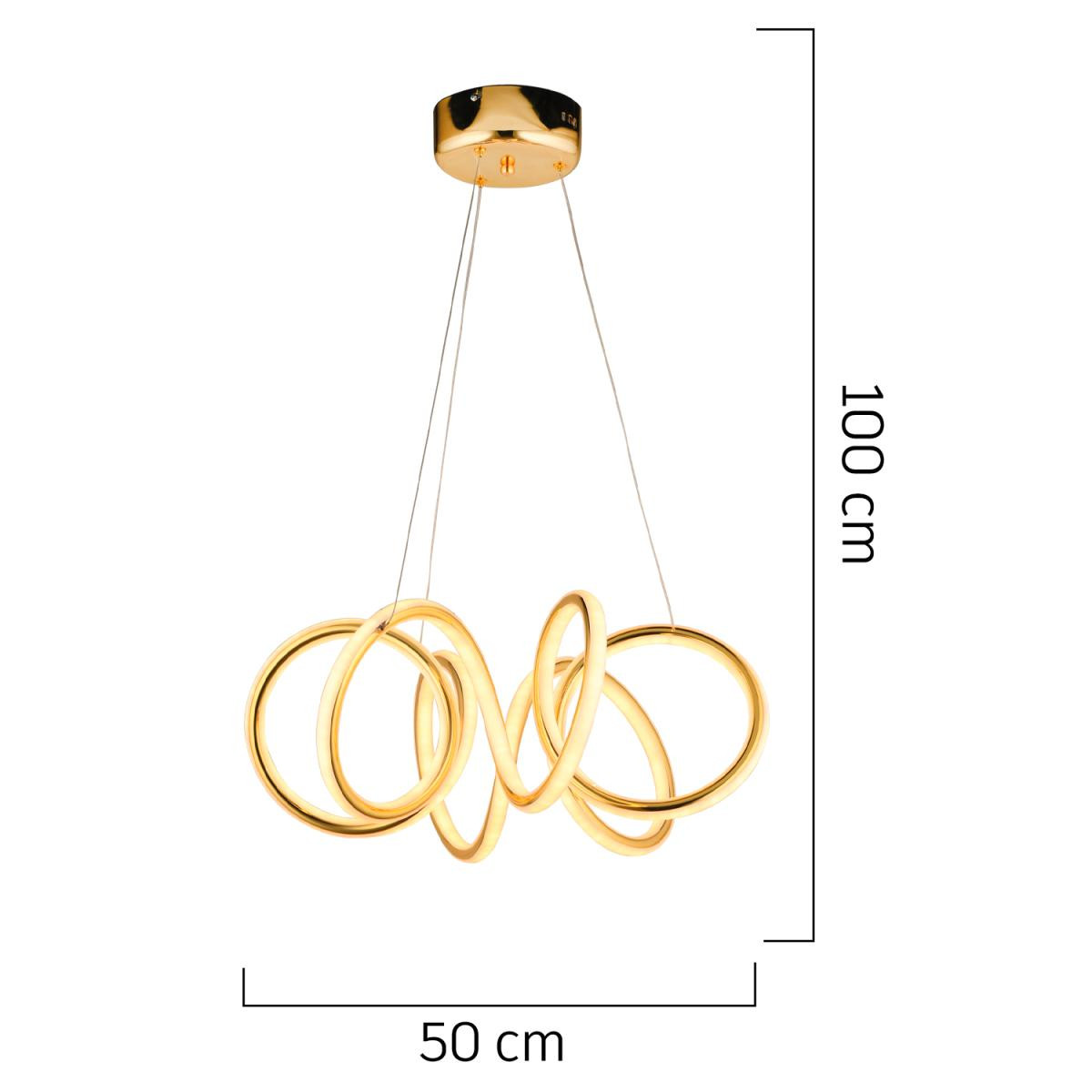 Evinizde ya da iş yerinizde şıklığı ve modernliği bir arada yaşamak istiyorsanız, bu gold LED avize tam size göre! Yüksek verimli LED aydınlatmasıyla hem enerji tasarrufu yapın hem de mekanınızı ışıl ışıl bir görünüme kavuşturun. Farklı ışık renkleri sayesinde ister sıcak bir ambiyans yaratın, ister çalışma alanınıza güçlü bir beyaz ışık katın. Özellikler; Ürün Eni: 50 cm; Ürün Boyu: 100 cm (Ayarlanabilir); Aydınlatma Türü: LED; Güç: 44 Watt; Işık Rengi: 3 renk (Sarı, Beyaz, Gün Işığı); Renk: Gold; Materyal: Metal; Kumanda: Yok; Garanti: 2 Yıl