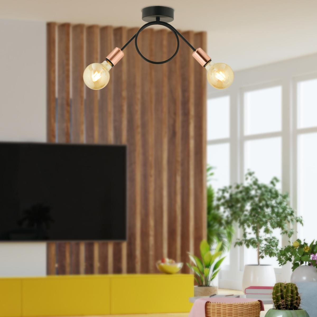Modern ve endüstriyel tasarımın göz alıcı birleşimi! Siyah gövdesi ve bakır detaylarıyla öne çıkan bu şık tavan aydınlatma, salon, mutfak ya da ofis gibi farklı yaşam alanlarında sofistike bir atmosfer oluşturur. İki ampullü yapısı sayesinde hem estetik hem de güçlü bir ışık sunar. Özellikler; Ölçüler: En 45 cm x Boy 30 cm; Renk: Siyah – Bakır detaylı; Materyal: Metal; Duy Tipi: E-27 (Standart ampul uyumlu); Ampuller: Dahil değildir; Boy: Sabit; Garanti: 2 Yıl