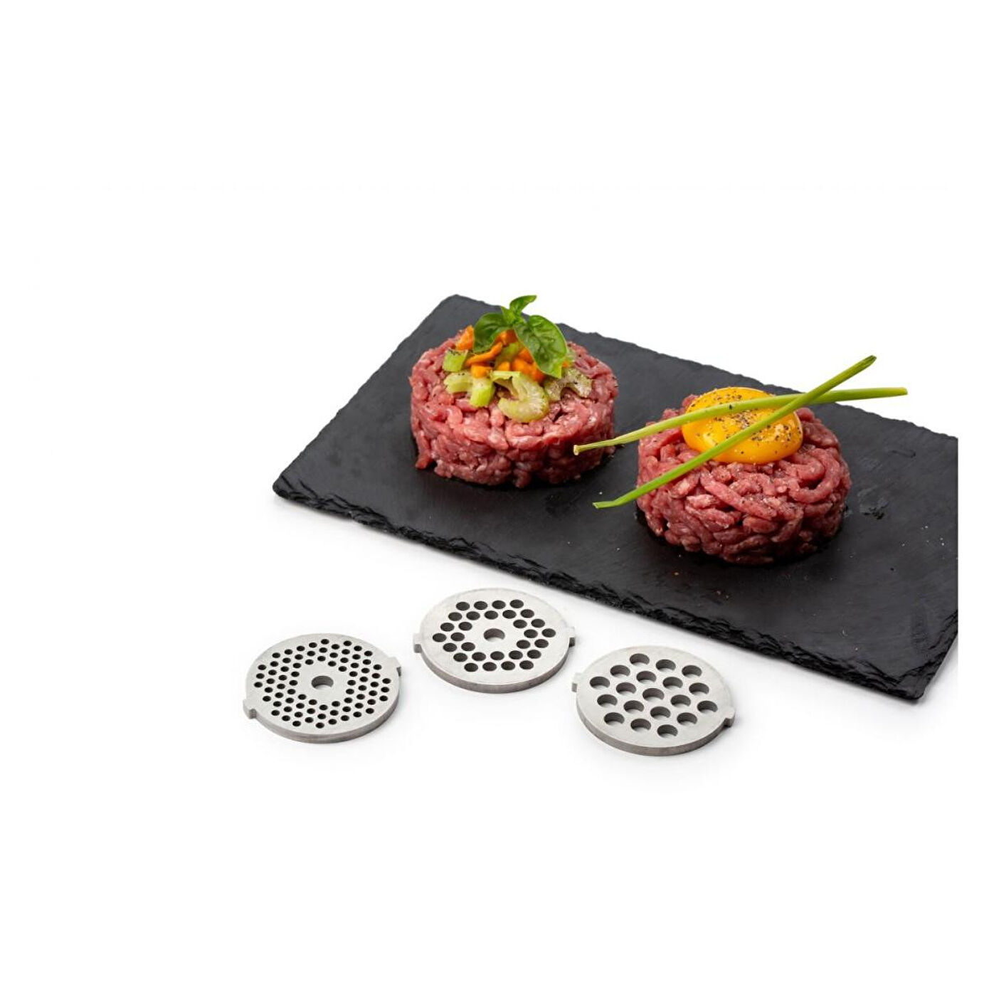 Kıyma makinesi aksesuarı: İşlenecek etin büyüklüğüne göre büyük, orta ve küçük delikli 3 disk içerir