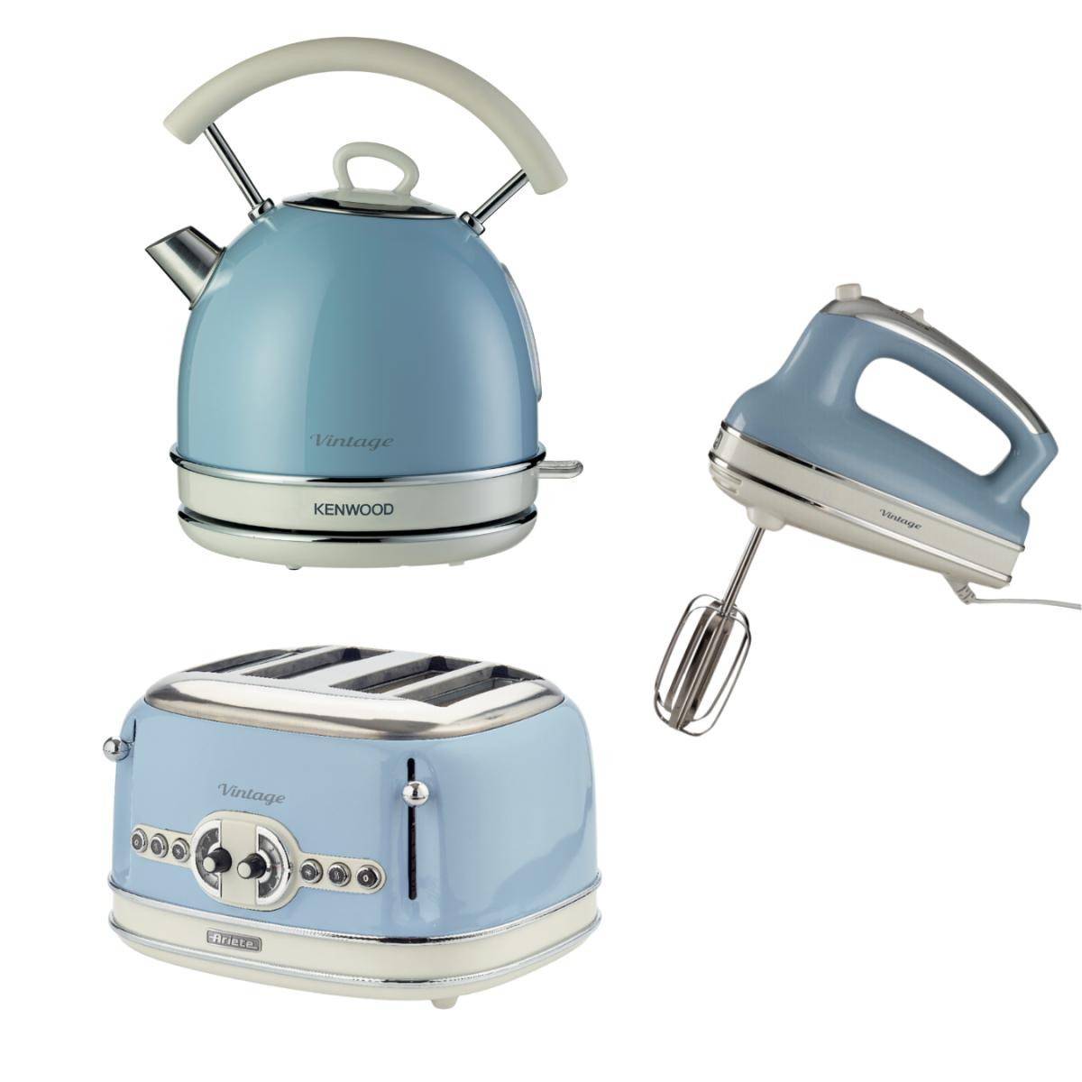 Ariete Vintage 3'lü Set, Mavi (dom Su Isıtıcı + El Mikseri + 4 Dilim Ekmek Kızartma Makinesi Özel Set) Khset13