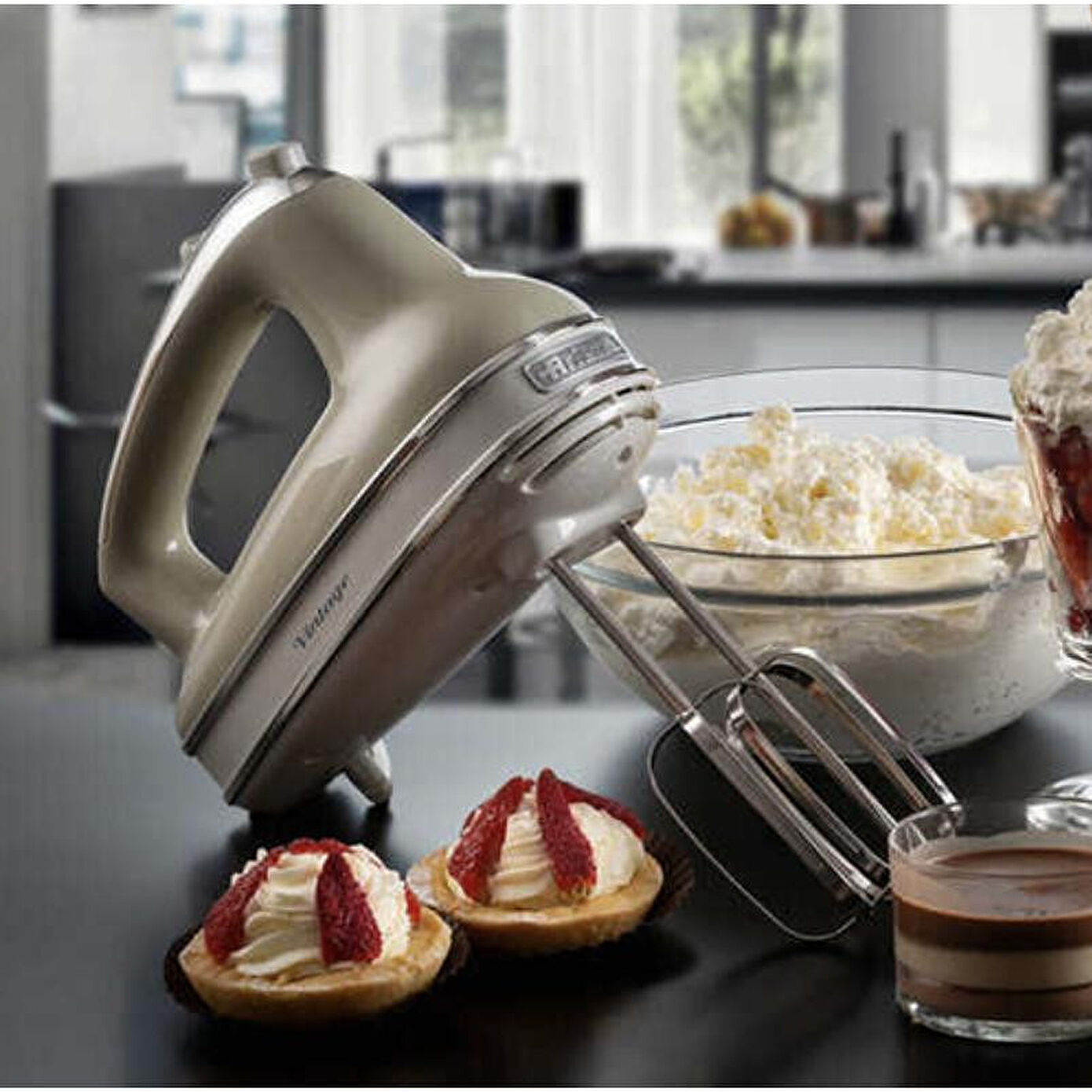 450 W 5 hız Çırpma ve yoğurma başlıkları Turbo fonksiyonu Vintage TasarımTüm El Mikseri Ve Blenderı Ürünlerini Gör