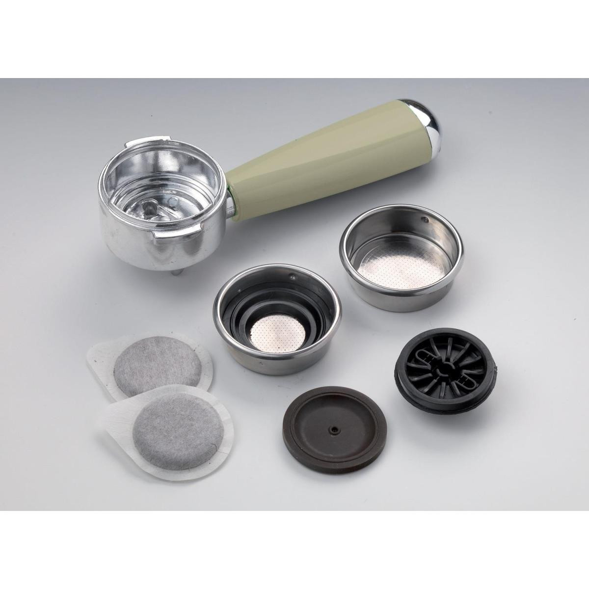 Ariete Vintage Espresso, öğütülmüş kahve veya ESE kapsülleri için en son teknolojiyi içeren, zarif ve zarif tasarıma sahip bir kahve makinesidir. 900 W alüminyum kazan ve 15 bar basınç pompası, yoğun ve hoş kokulu bir aromaya sahip, dolgun ve kremsi bir espressoyu garanti eder. Çıkarılabilir paslanmaz çelik damlama tepsisi ve kolay doldurma için çıkarılabilir 0,9 litrelik tank ile maksimum rahatlık. Maxi-Cappuccino cihazı, İtalyan espressosuyla mükemmel kombinasyon halinde süt köpüğü hazırlamak için ideal bir yardımcıdır. Ariete 1389 Vintage, 30 dakika işlem yapılmadığında gücü kapatan akıllı bir bekleme cihazına sahiptir.