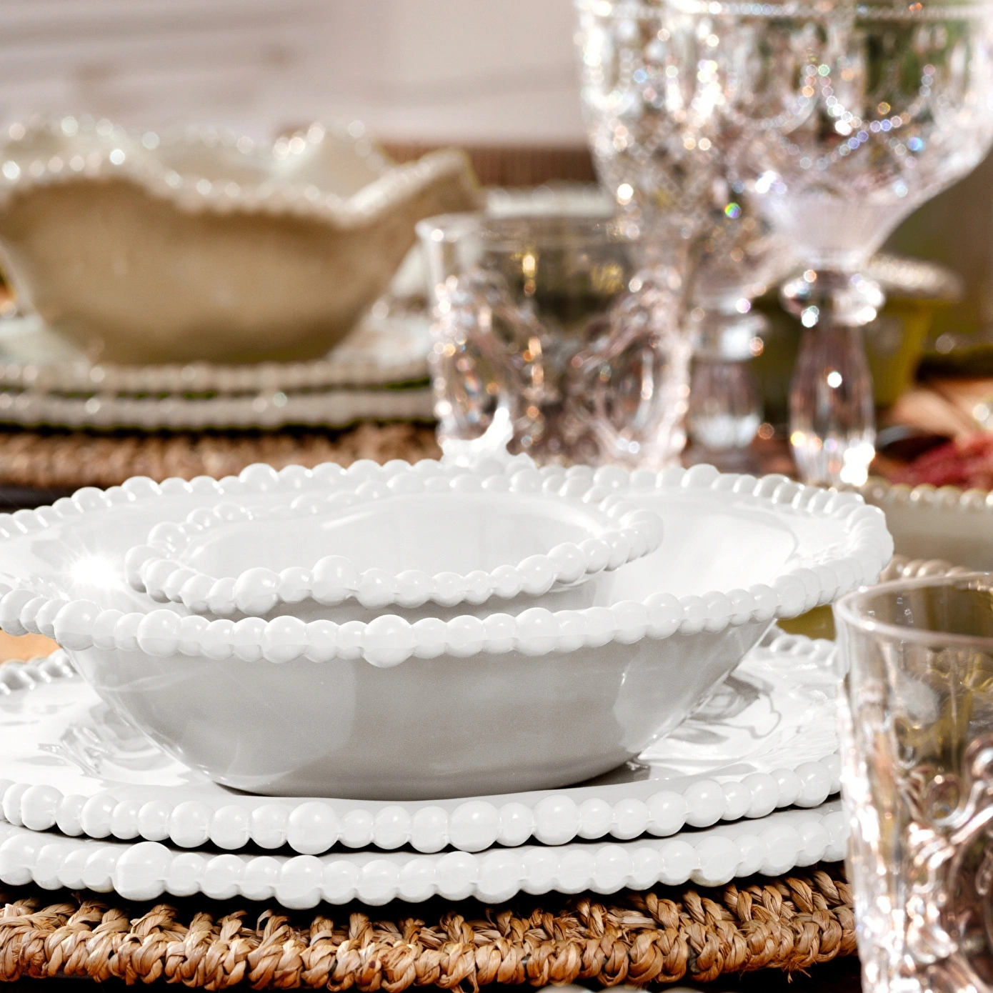 Baci Milano Joke Table & Kitchen, pastel tonlar ve süslü kenarlarıyla çok yönlü ve yenilikçi çizgilere sahip bir koleksiyondur. Şık bir düğünden evde akşam yemeğine kadar farklı koşullarda sofralarınıza sade ve zarif görünümü taşıyıp her zaman şaşırtmaya hazırdır.