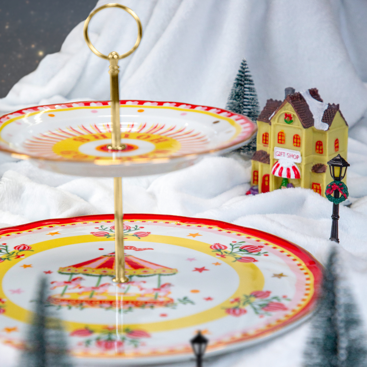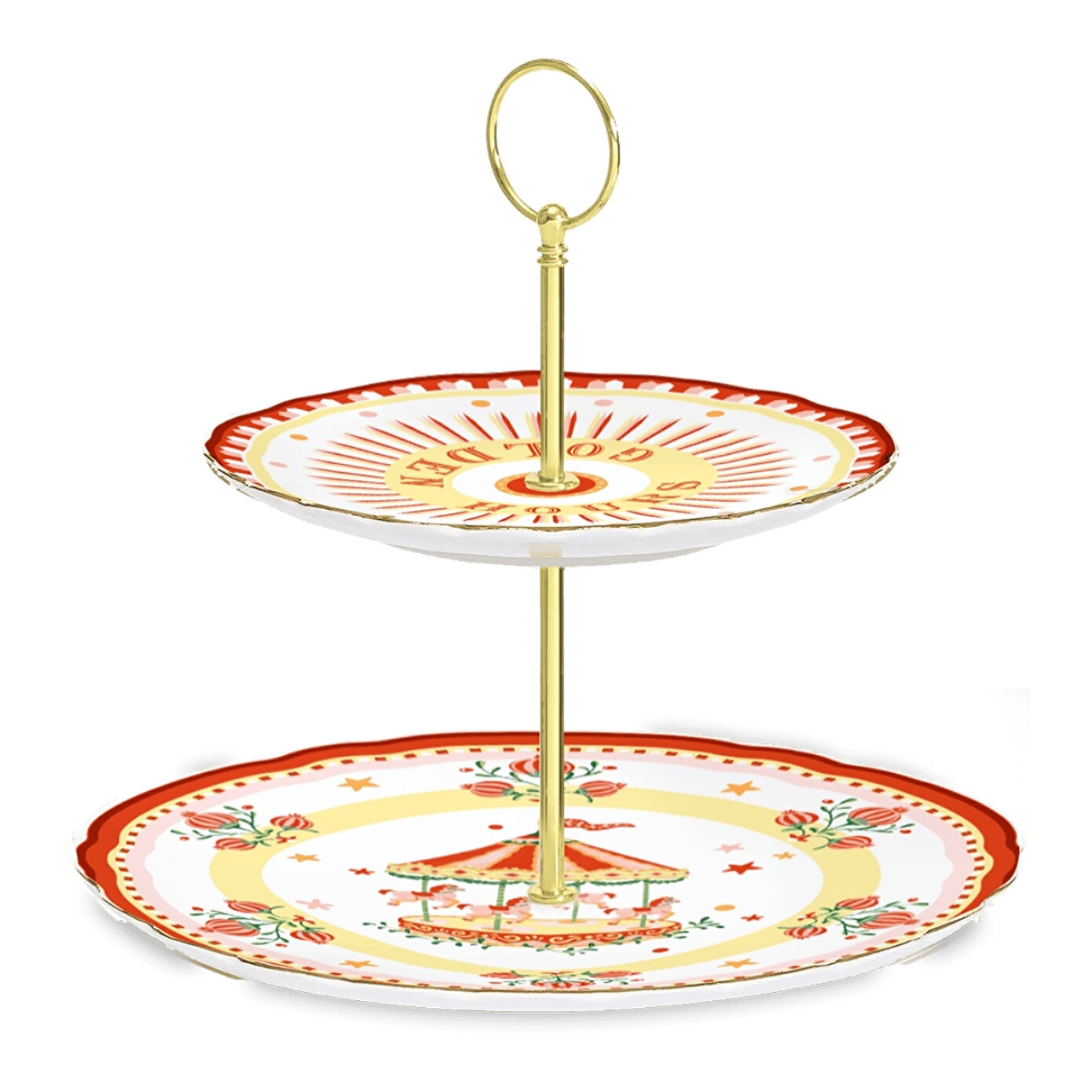 Baci Milano’nun Mamma Mia Yılbaşı koleksiyonuna ait bu 2 katlı kek standı, yılbaşı sofralarınıza şıklık ve neşe katıyor. Zarif tasarımı ve yılbaşı temalı desenleriyle, tatlılarınızı, keklerinizi ve atıştırmalıklarınızı göz alıcı bir şekilde sunmanıza yardımcı olur.