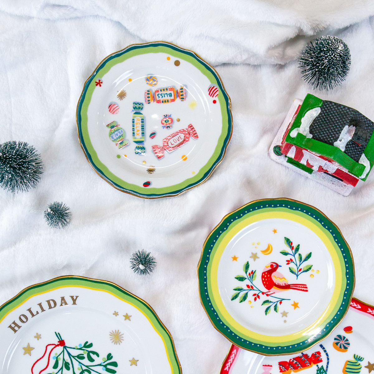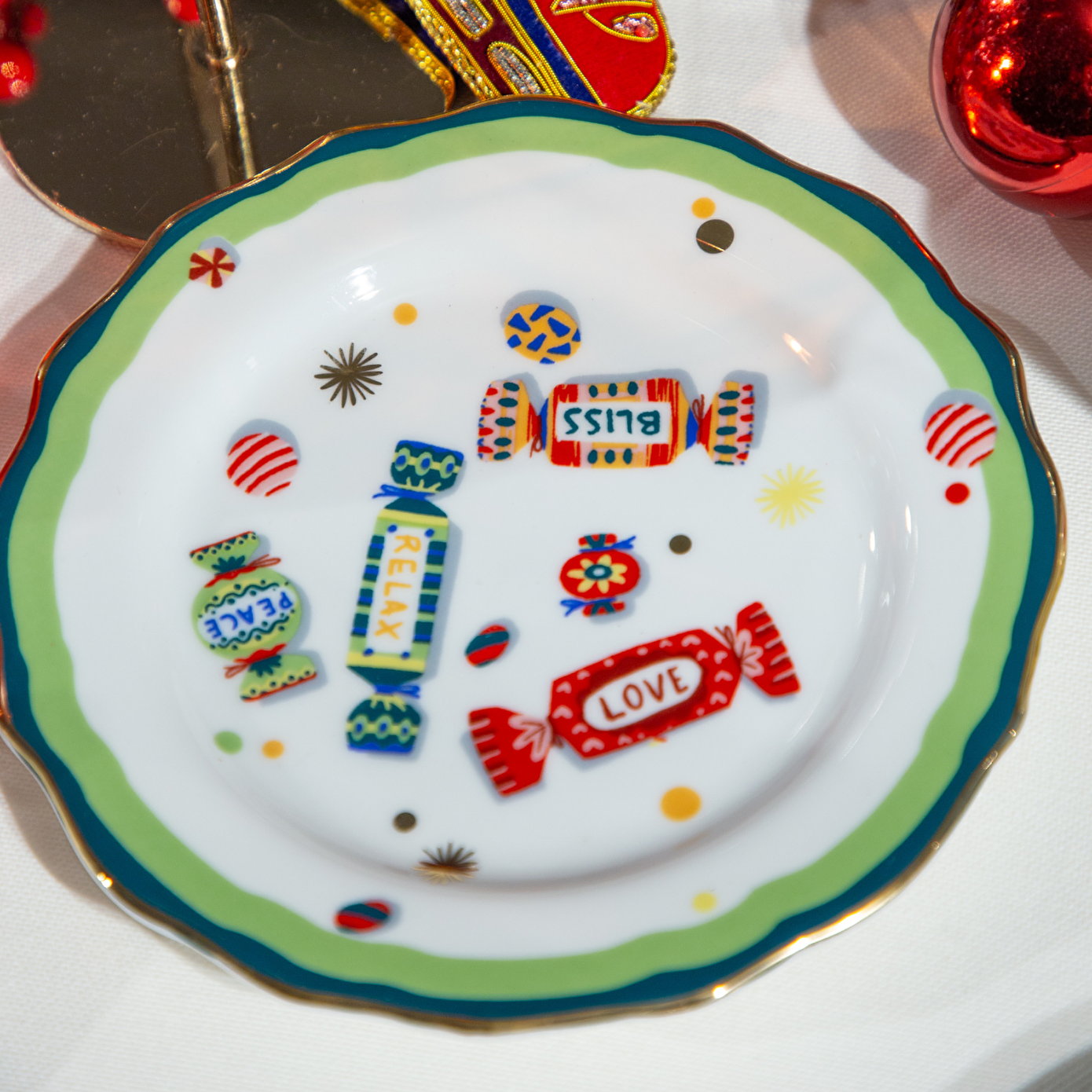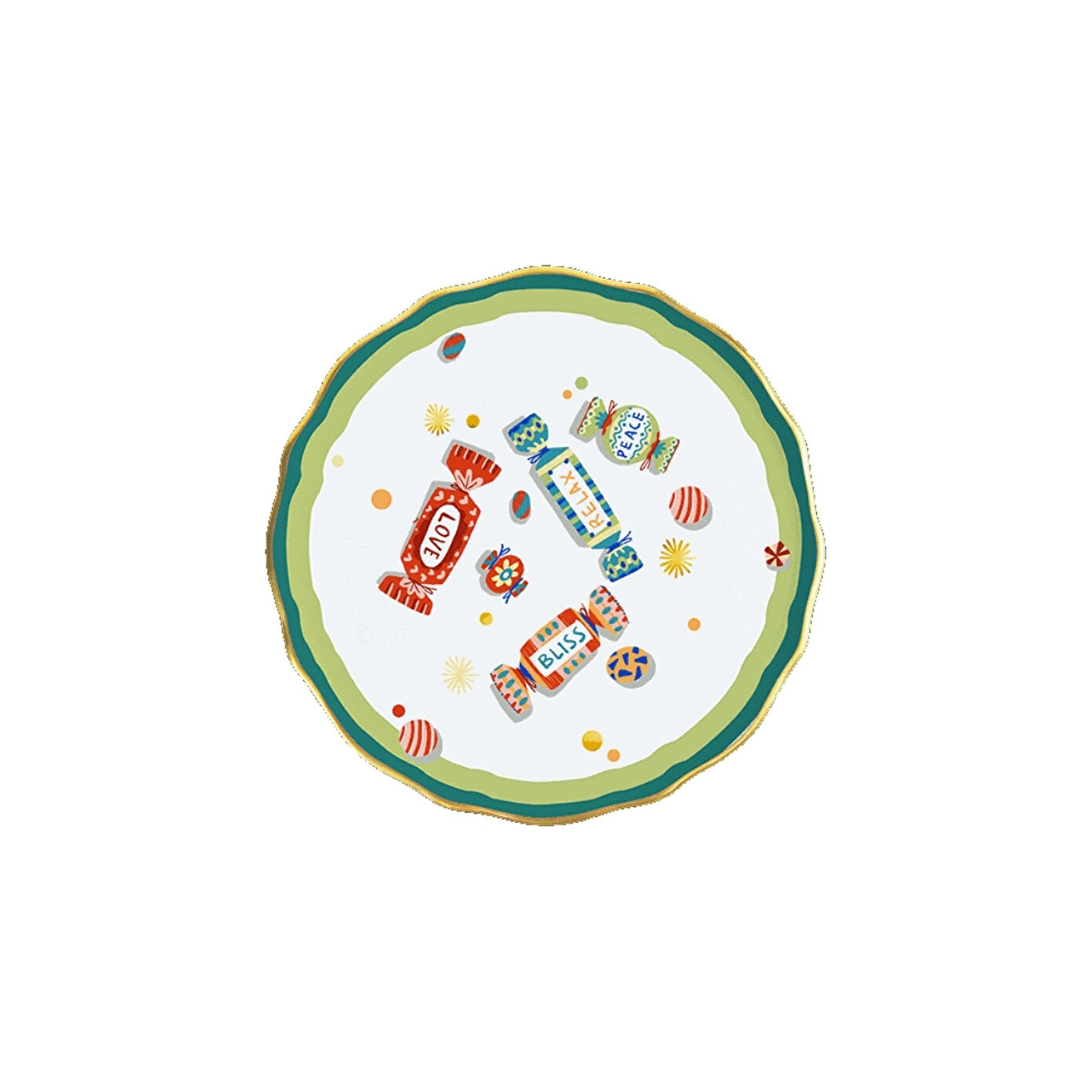 Baci Milano’nun Mamma Mia Yılbaşı koleksiyonuna ait bu şeker desenli tatlı tabağı, sofralarınıza yılbaşı ruhunu getiriyor. Canlı renkleri ve göz alıcı tasarımıyla, ekmek, atıştırmalık ve küçük sunumlar için şık bir alternatif sunar.