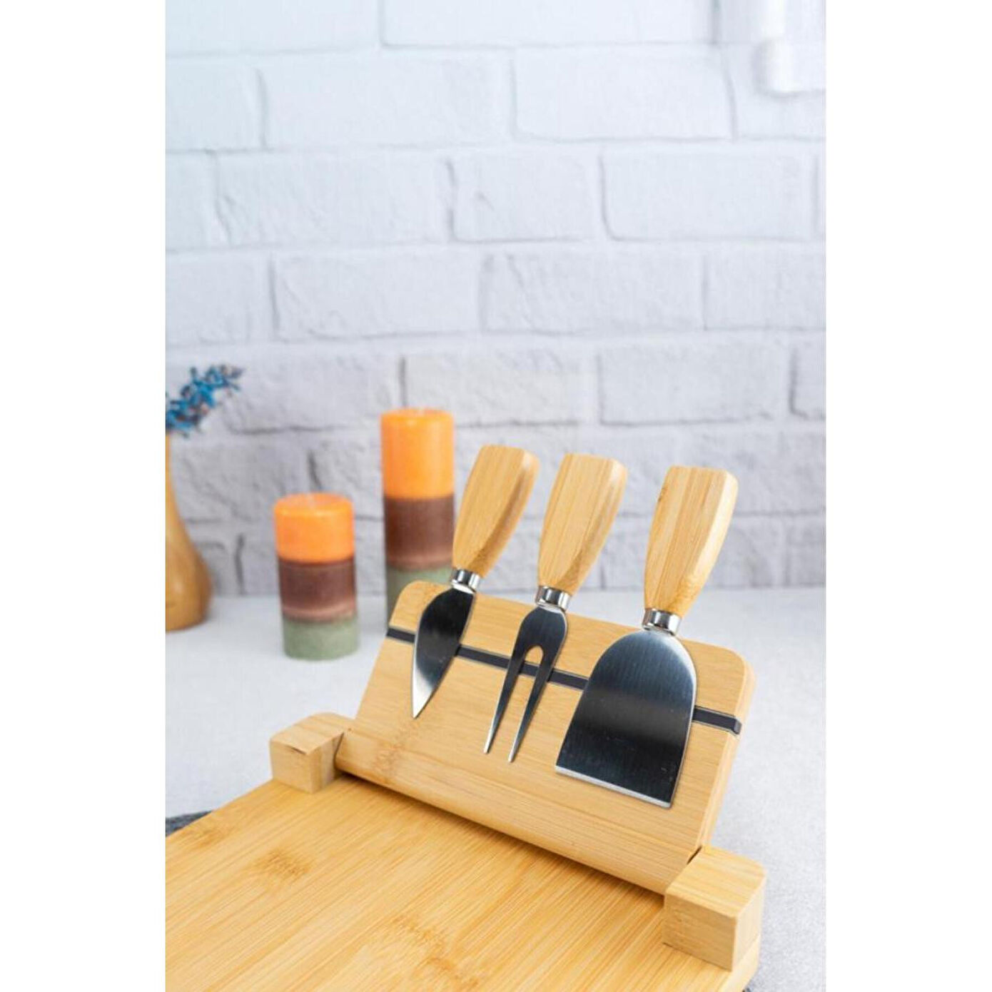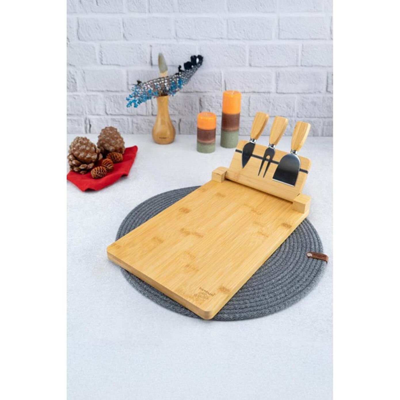 - Doğal bambudan üretilmiş, dayanıklı ve çevre dostu yapısıyla mutfakta şıklığı ve sürdürülebilirliği bir arada sunar.; - Dört parçadan oluşan set; peynir dilimleyici, servis tabağı, kepçe ve kesme tahtası içererek çeşitli peynir çeşitlerinizi sergilemenize olanak tanır.