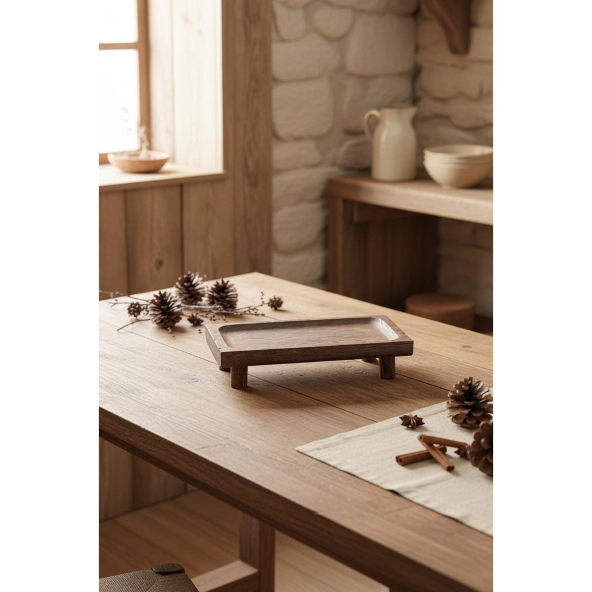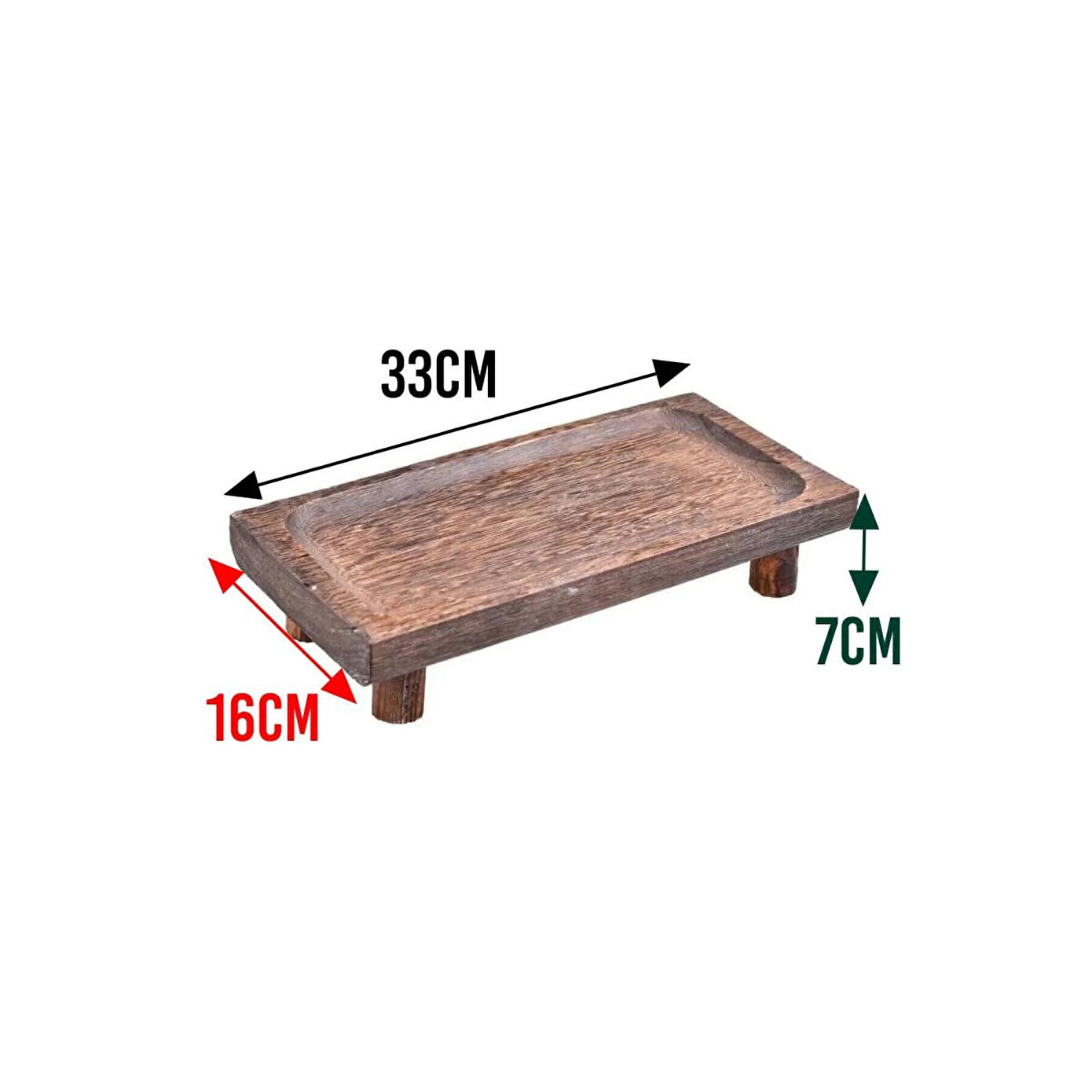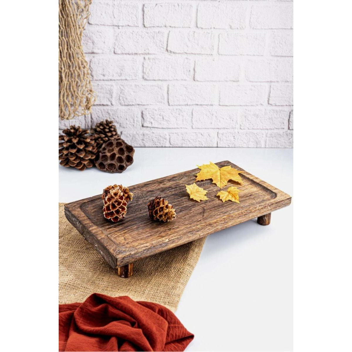 Tek parça halinde gelen bu sunum tepsisi, minimalist ve şık tasarımıyla dikkat çeker;; Doğal ahşap malzemesiyle hem dayanıklı hem de estetik bir görünüm sunar;; 33x16x7 cm boyutlarındaki kompakt yapısı, küçük sunumlar için idealdir ve yer kaplamaz;; Ahşabın sıcak ve doğal dokusuyla mutfak dekorasyonunuza zarif bir dokunuş katar;;