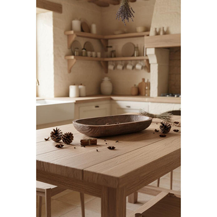 Salata kasesi olarak tasarlanmış, günlük kullanıma uygun ve şık bir aksesuar; Doğal bambu materyali sayesinde hem dayanıklı hem de çevre dostu bir seçim; Tek parça halinde gelen bu kase, kolayca saklanabilir ve pratik kullanım sunar;