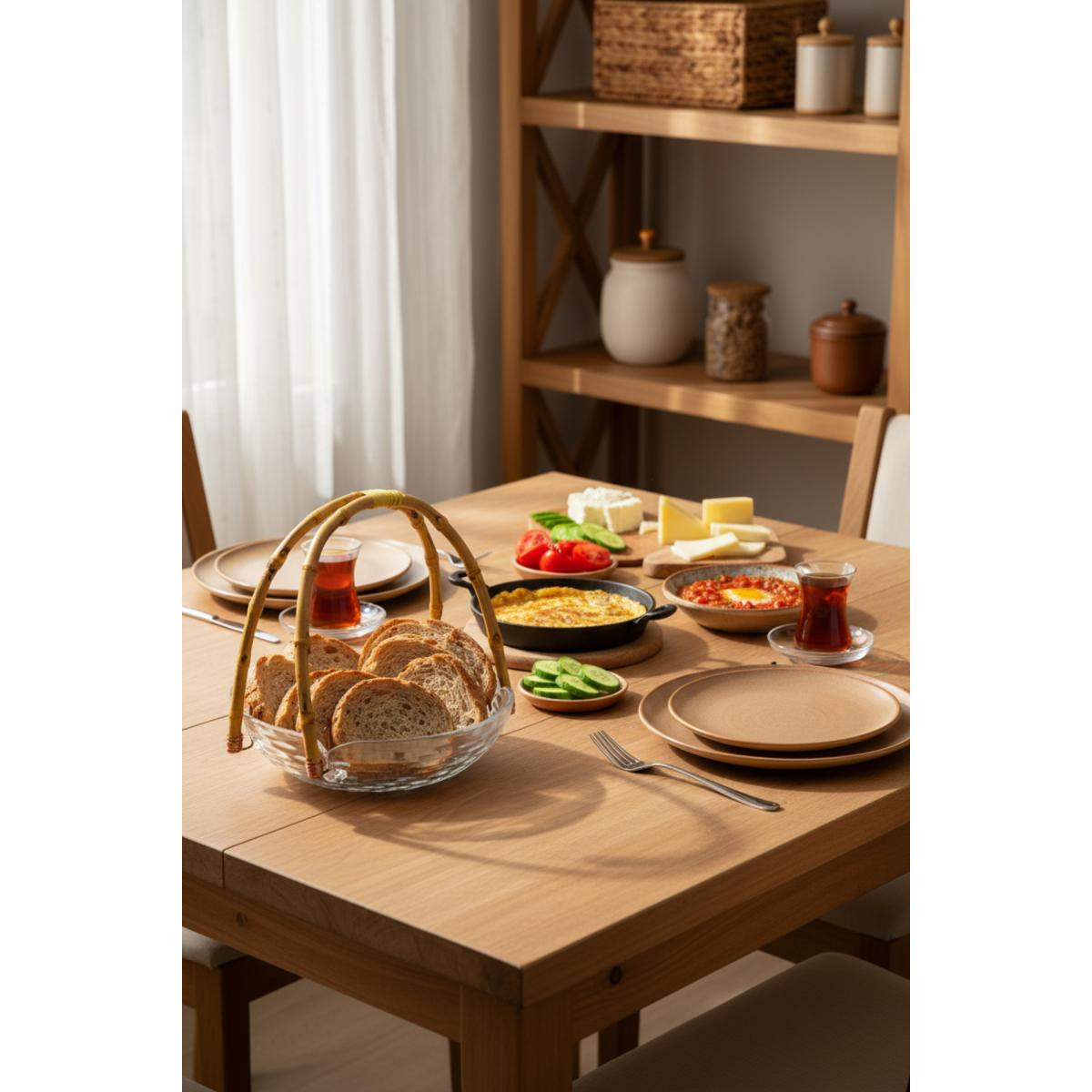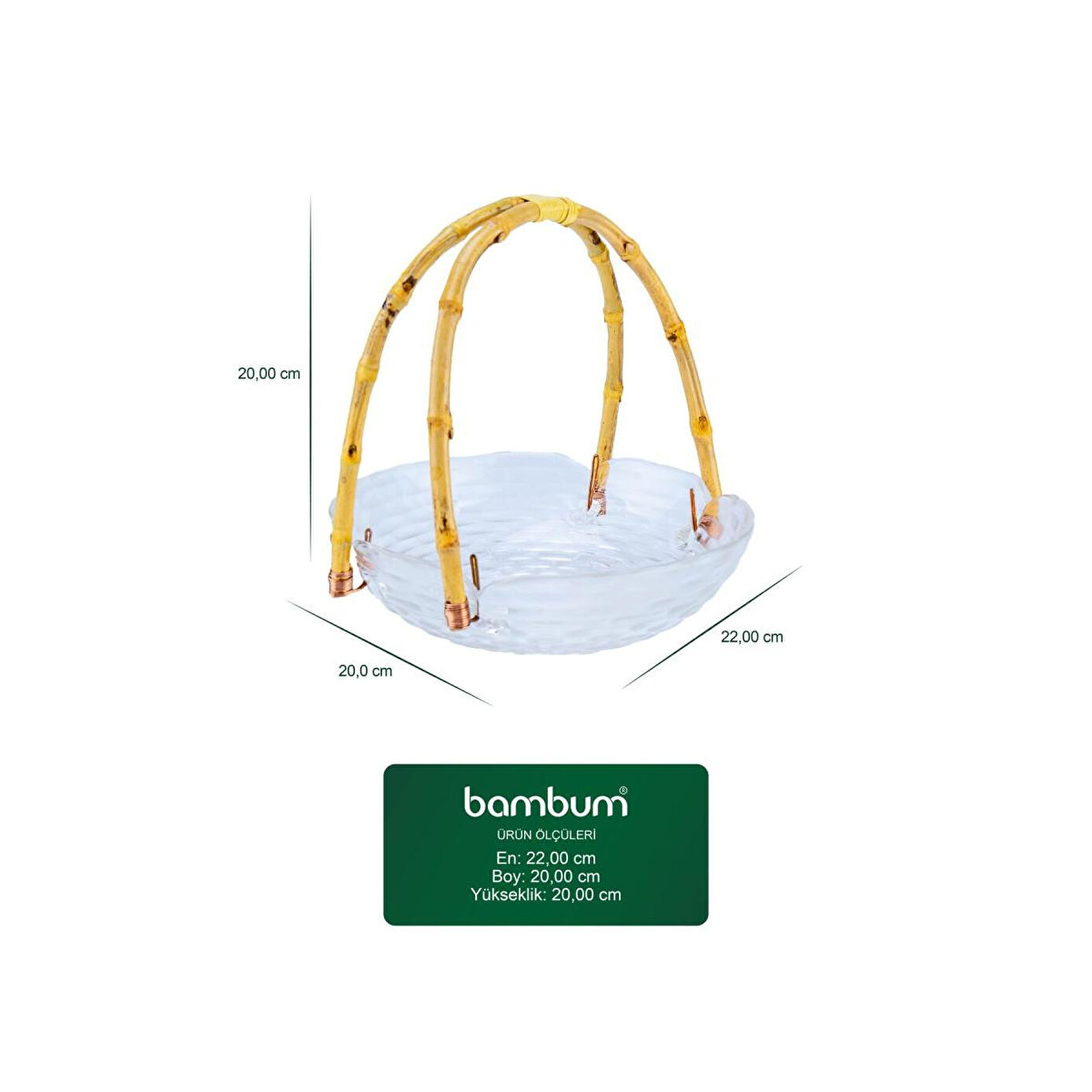 Bambum Cestino Bambu Kulplu Cam Yuvarlak Sunum Tabağı Dalgalı Desen