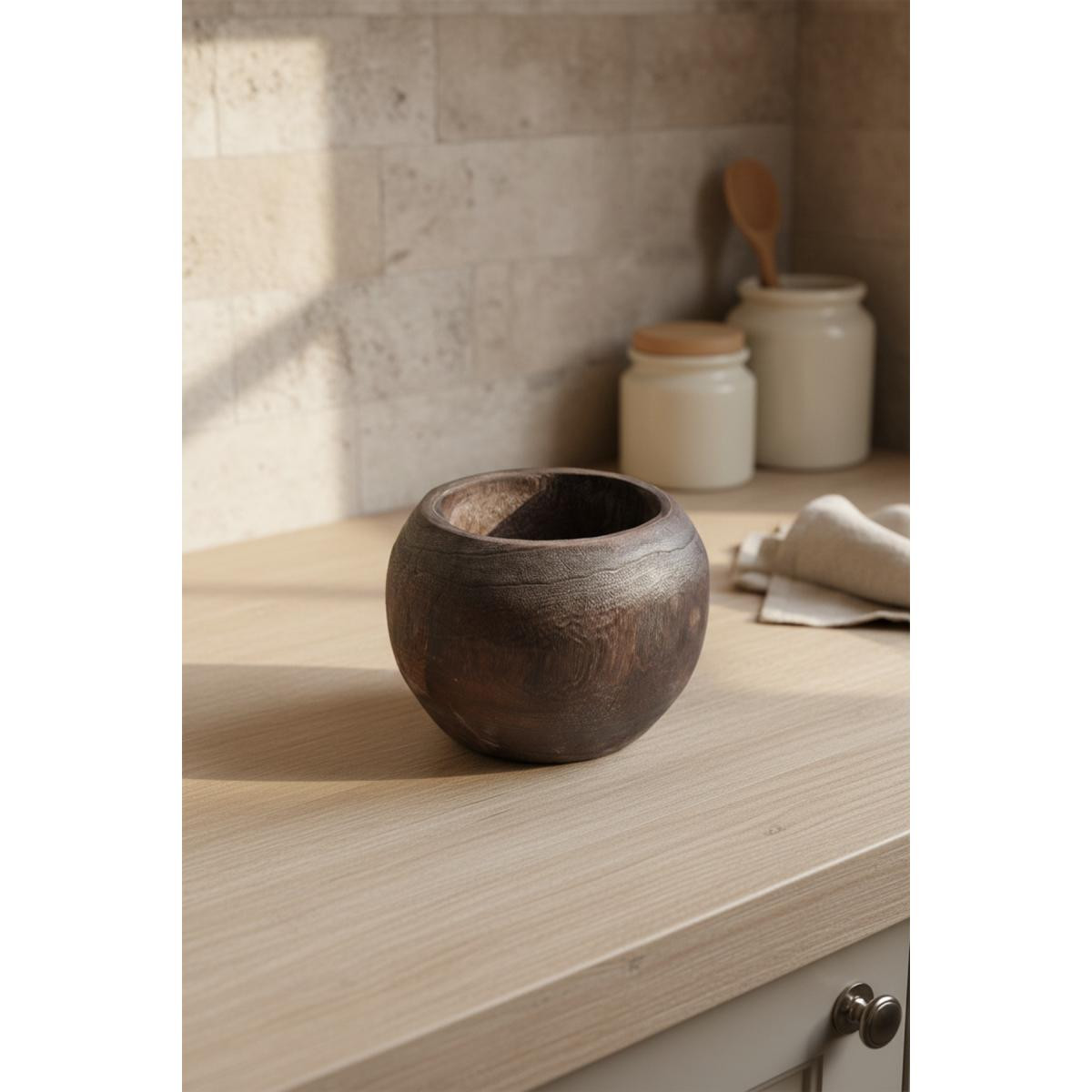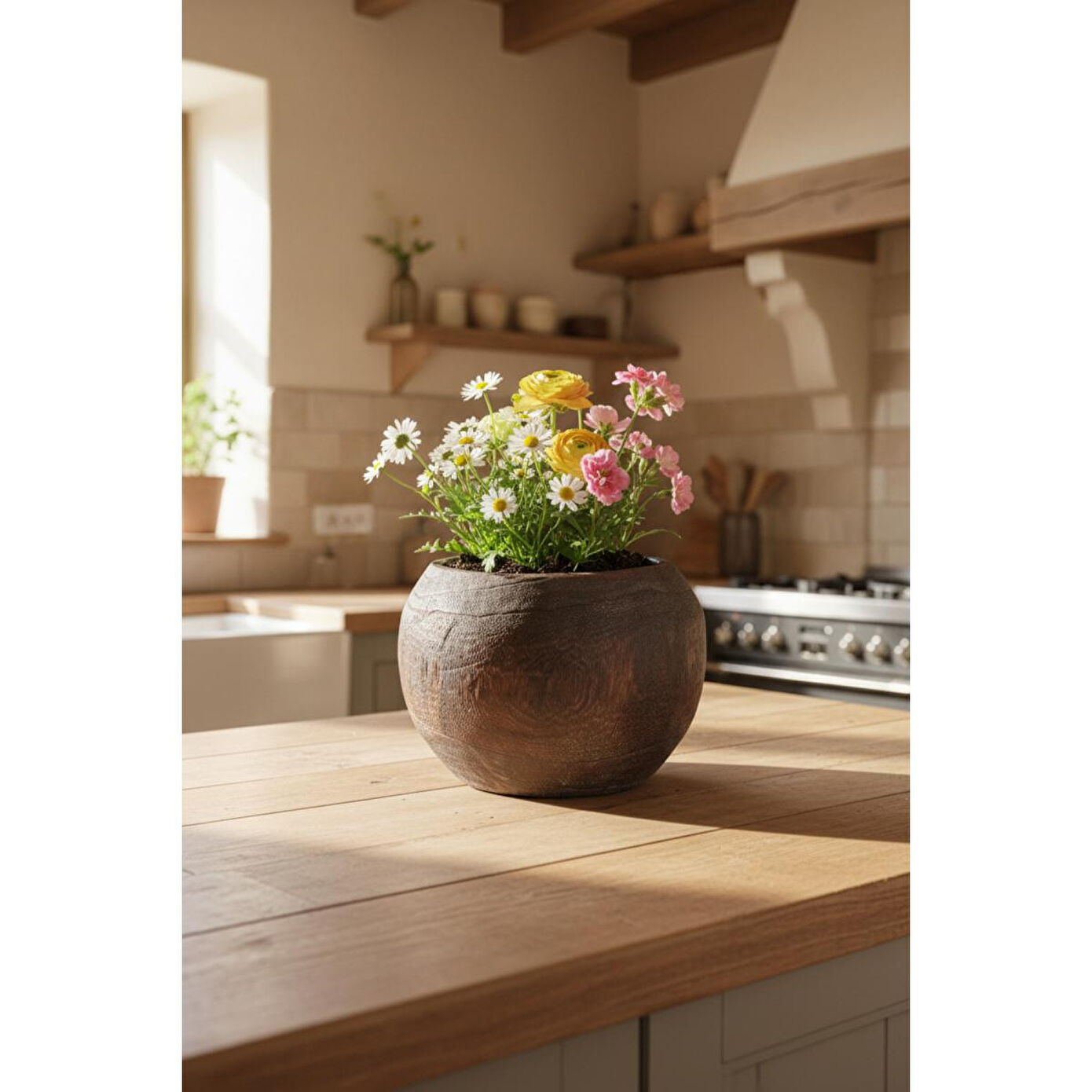 Bambum Chalia Mini Saksı Otantik Eskitme Efektli Doğal Oyma Pavlonya Ağaç Saksı Bahex B1635