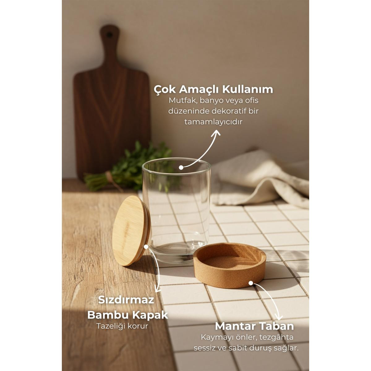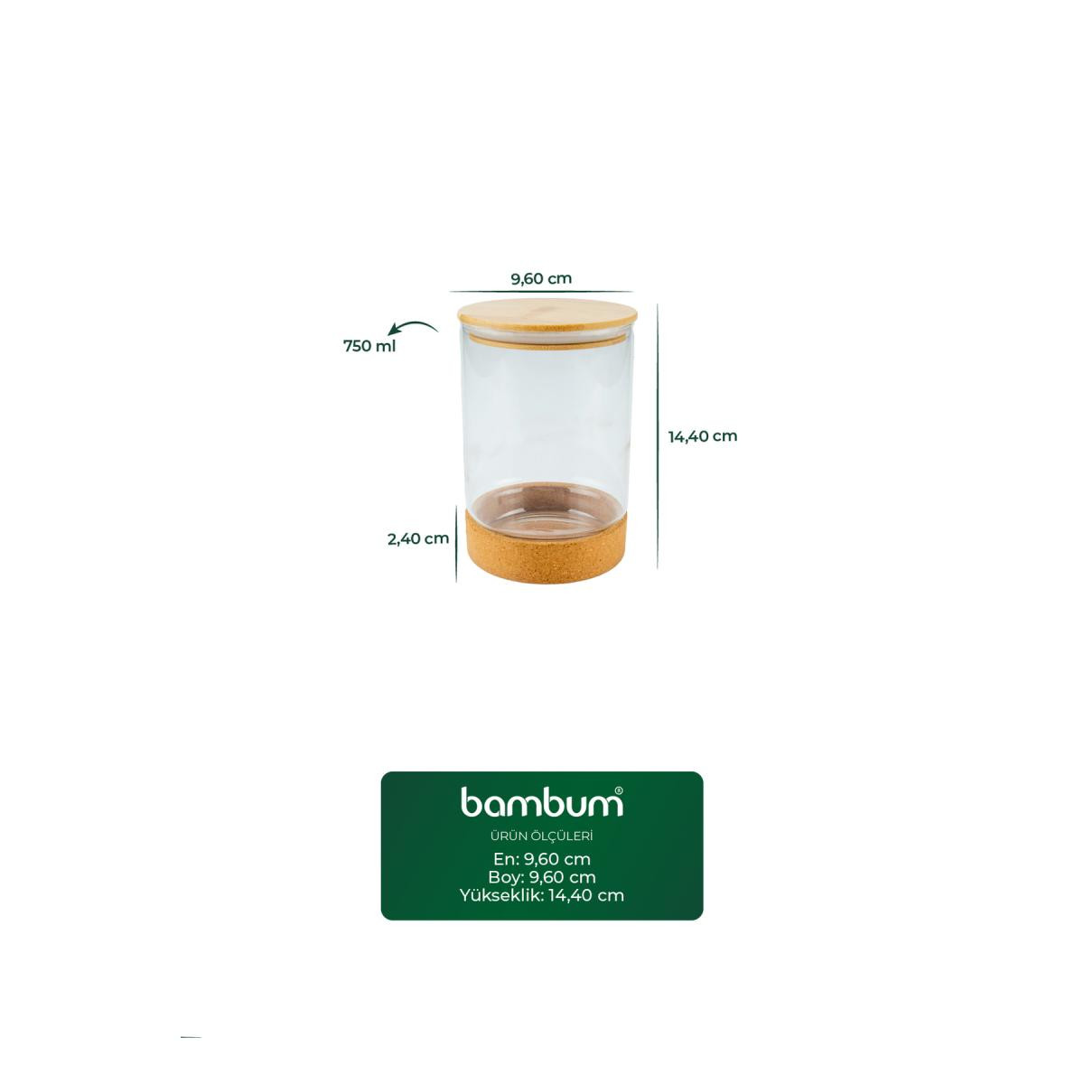 Bambum Corki - Mantar Altlıklı Cam Saklama Kabı 130ml