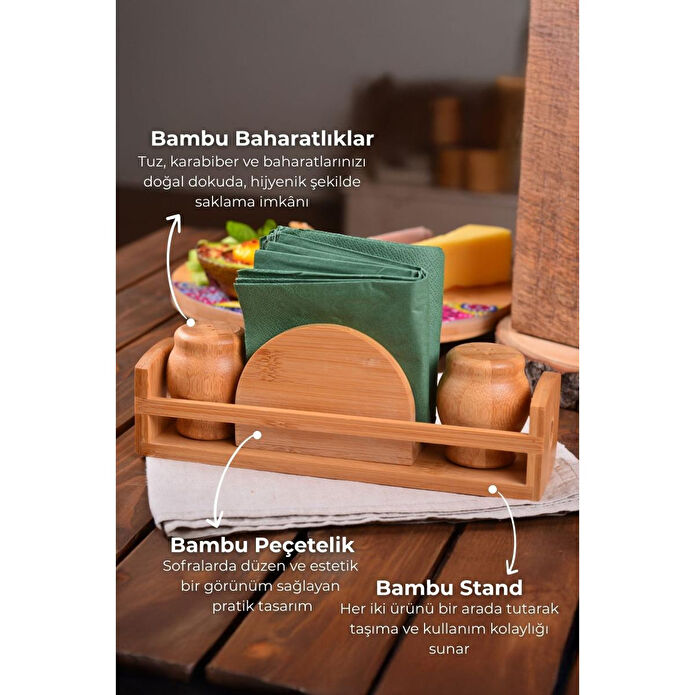 Bambum Elcoda - Peçetelikli Tuzluk & Biberlik
