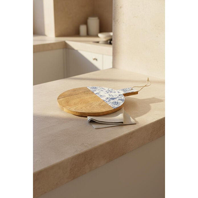 - Yuvarlak tasarımı ile mutfakta şık bir görünüm sunar ve kesme işlemlerini kolaylaştırır.; - Gül motifli dekorasyonu ile mutfağınıza estetik bir dokunuş katar.; - Dayanıklı malzemeden üretilmiştir, uzun süreli kullanım için idealdir.; - Kolay temizlenebilir yüzeyi sayesinde hijyenik bir kullanım sağlar.; - Kesme tahtası olarak kullanılabildiği gibi, sunum tabağı olarak da tercih edilebilir.;