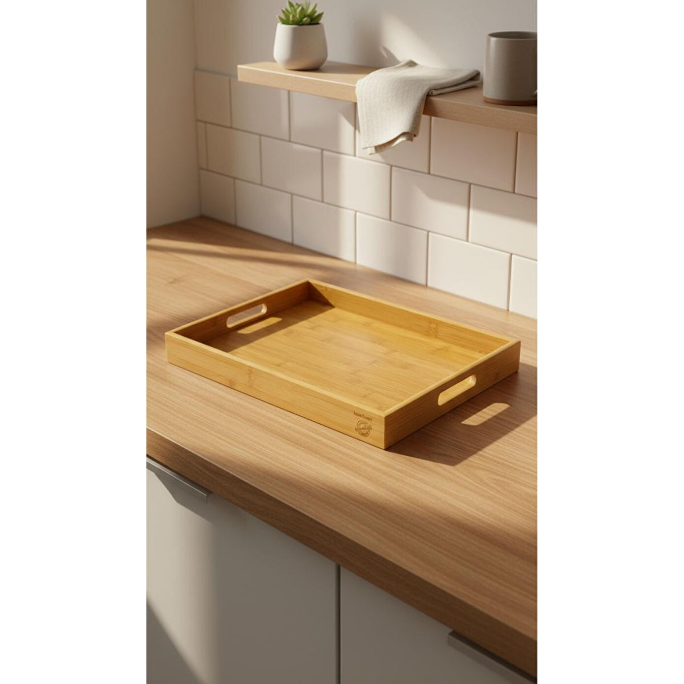 - Doğal bambu malzemesi sayesinde hem dayanıklı hem de çevre dostu bir kullanım sunar; - Bambu desenli tasarımı ile mutfak dekorasyonunuza şık ve doğal bir dokunuş katar; - Bambu yapısı, hafifliği ve kolay temizlenebilirliği ile pratik bir kullanım sağlar; - Bambu tepsinin doğal dokusu, mutfak tezgahınızda sıcak bir atmosfer yaratır;